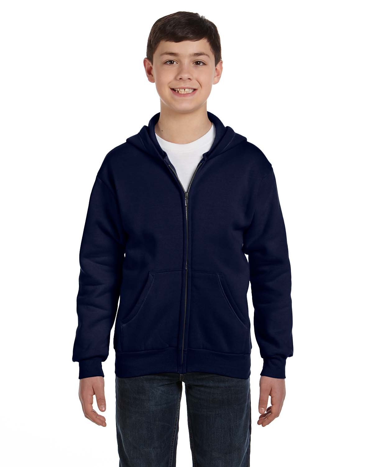 Hanes® EcoSmart® brings you our heaviest fleece yet, this ultra-cozy boys' fleece jacket is made with soft cotton sourced from American farms. The feel-good design offers a classic zip-front for easy styling along with stretch ribbed detailing. Made with safety in mind, this boy’s jacket features a kid-safe cord-free hood, keeping wind and chill out. Finished with a Tagless® interior, this cozy jacket brings the comfort. The ideal layering piece, pair it with his favorite sweats for a relaxed fit he'll love.