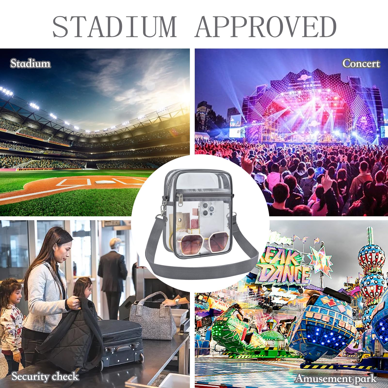 【Stadium Approved Size】The size for stadium events - 8.3" H x 6.7" L x 2.8" W, meets the clear bag policy of no larger than 12*12*6 inches, making it suitable for stadiums, concerts, and sports events.