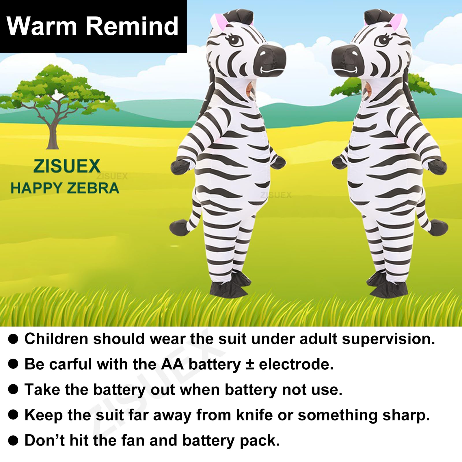 ZISUEX ZEBRA INFLATABLE COSTUME ADULT MATERIAL:ZISUEX Funny zebra costumes made of polyester zebra blow up suit with great quality ,waterproof , breathable,zebra costume adult for men material to keep your skin comfortable