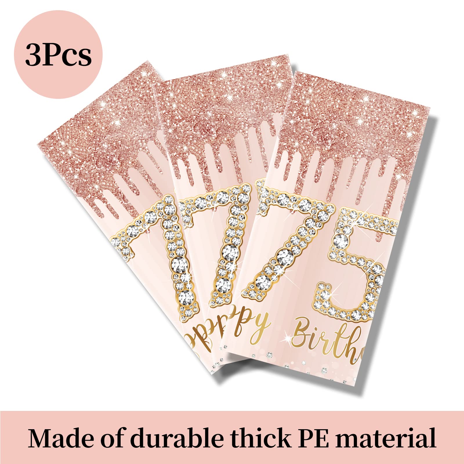[You will get] - 3Pack pink rose gold 75th birthday tablecloth decorations for Women. 54 x 108 inches, suitable to cover most rectangular table tops. [Note: Please measure table size before purchase]