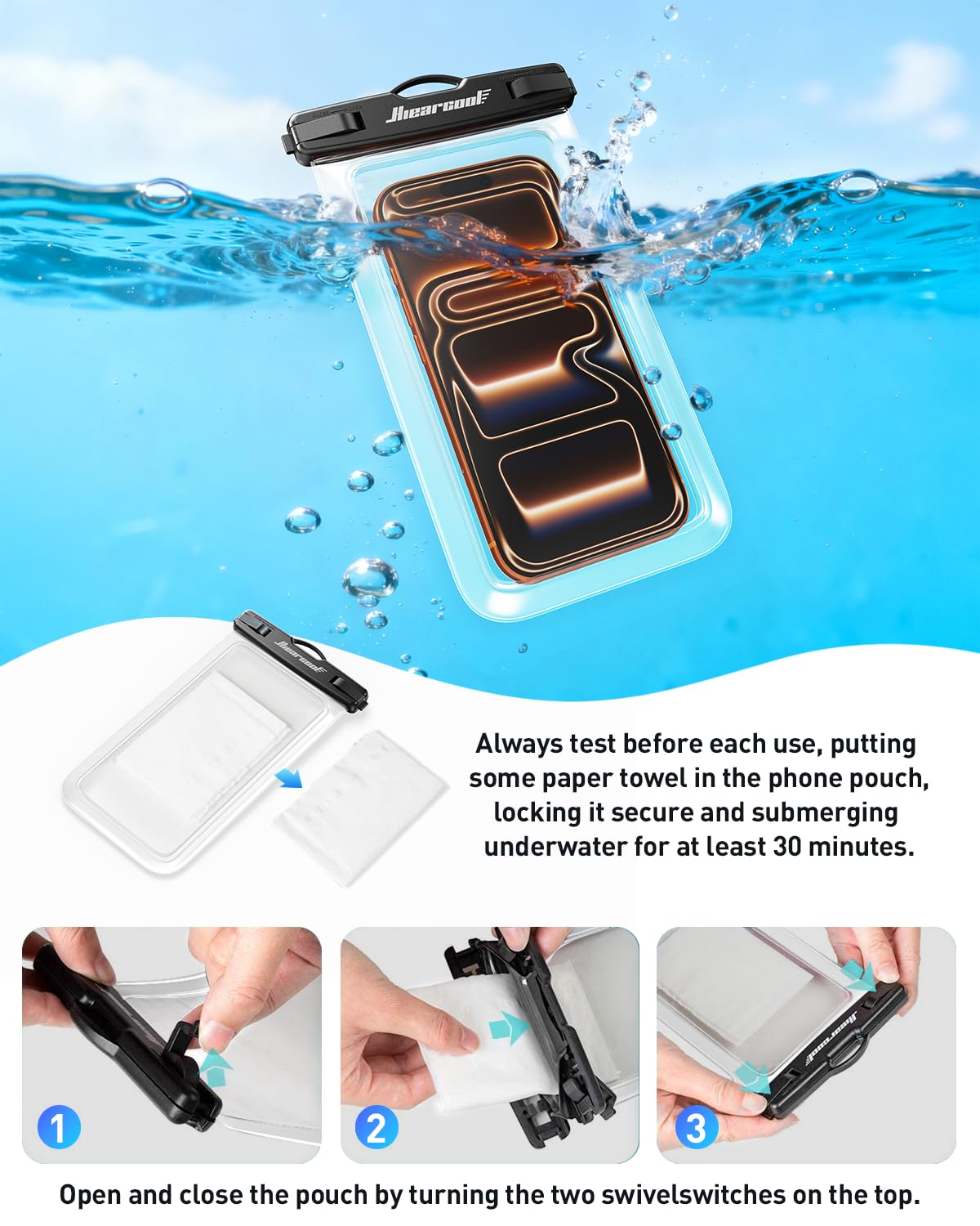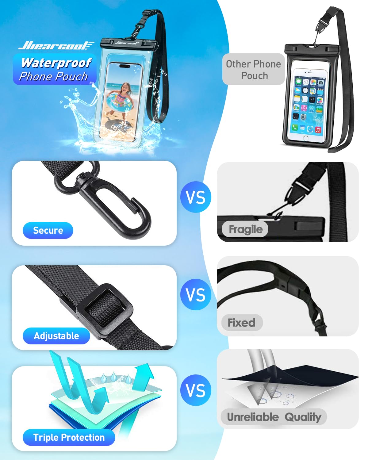 BEACH ESSENTIALS-SUPERIOR WATERPROOF PROTECTION: Certified IPX8 waterproof with Hiearcool's triple layer lock-down technology provides complete protection against water, snow, dust, and sand. Ensure your cell phone stays dry