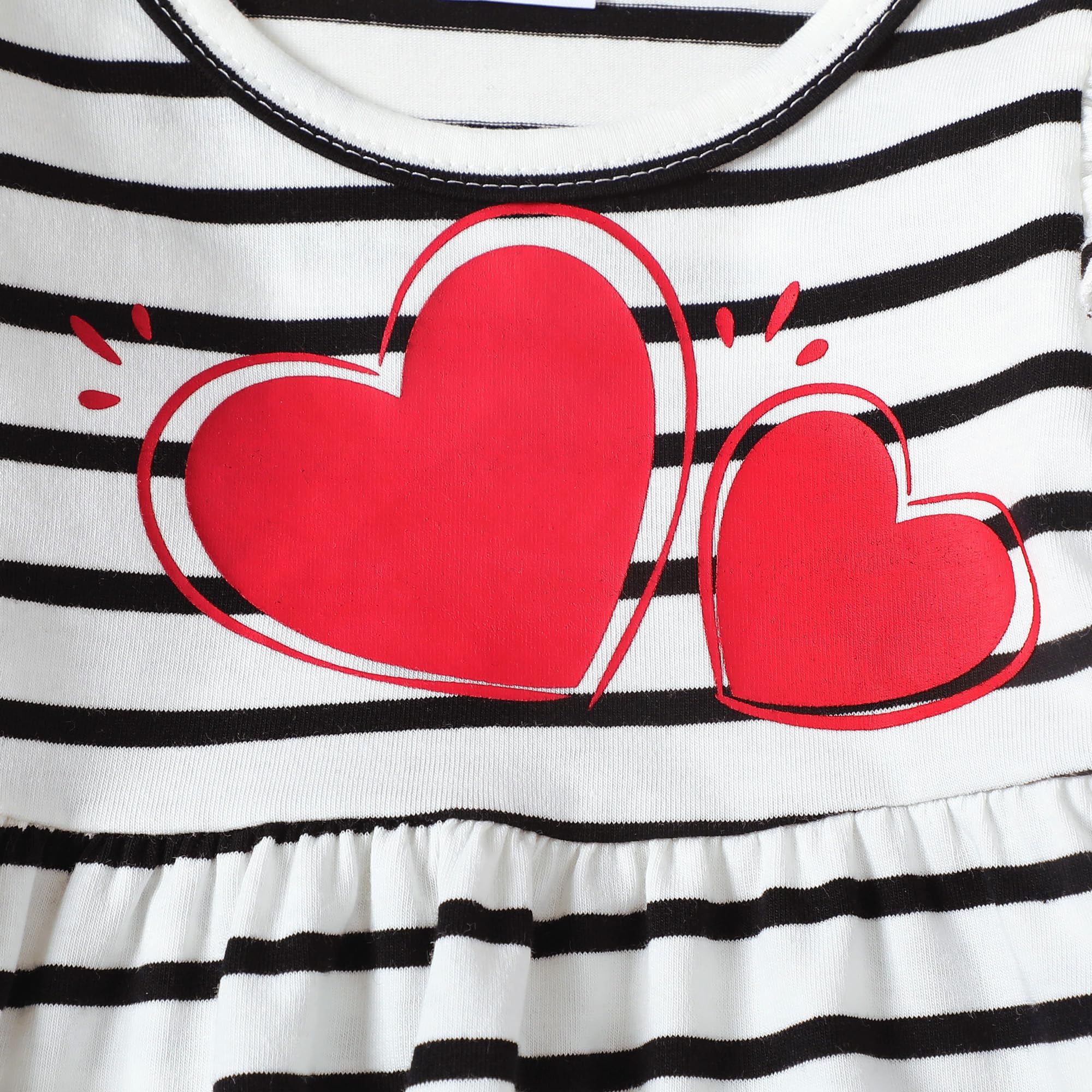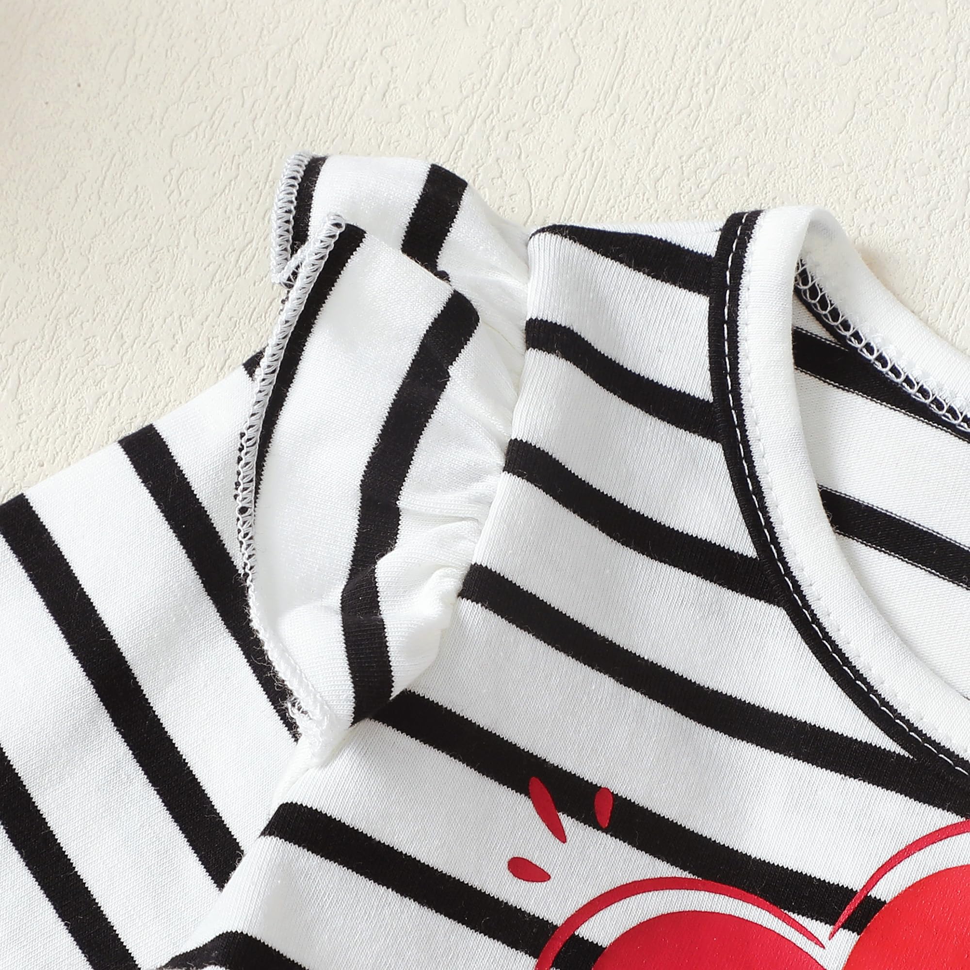 Design: Red love heart ruffle long sleeve shirt, match with solid pants, simple yet cute