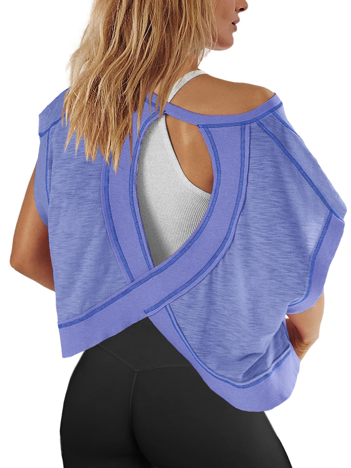 Occasion: Embrace comfort and style effortlessly. This short sleeve open back tops is perfect for going to or from a workout, this tee features a soft fabrication, slouchy crop and flattering back opening. Its adaptability blends seamlessly with your lifestyle.