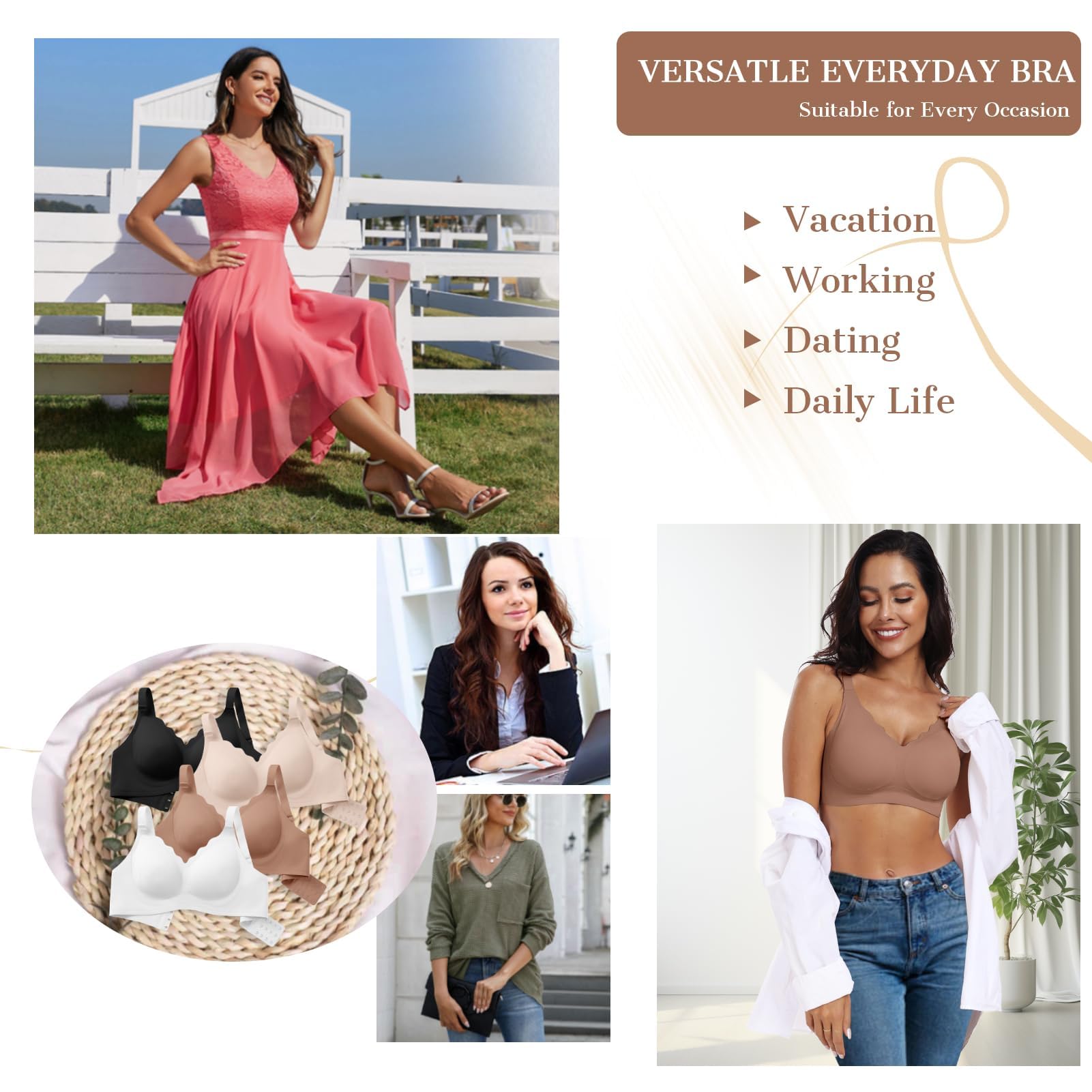 Seamless Bras for Everyday Wear - These seamless bras ensure invisibility under clothing, giving you the freedom to mix and match with different styles. They can serve as everyday bras, sleepwear, lounge bras, minimizer bras, and are flattering to pair with t-shirts, blouses, suits, cardigans, or sweaters. A sports bra ideal for light activities like yoga, dance, or walking.