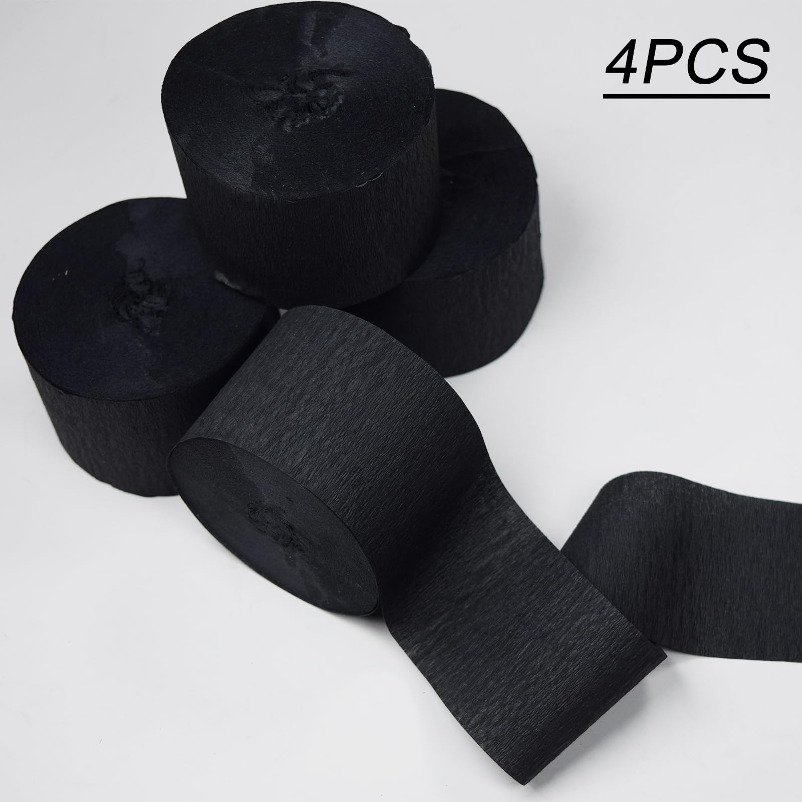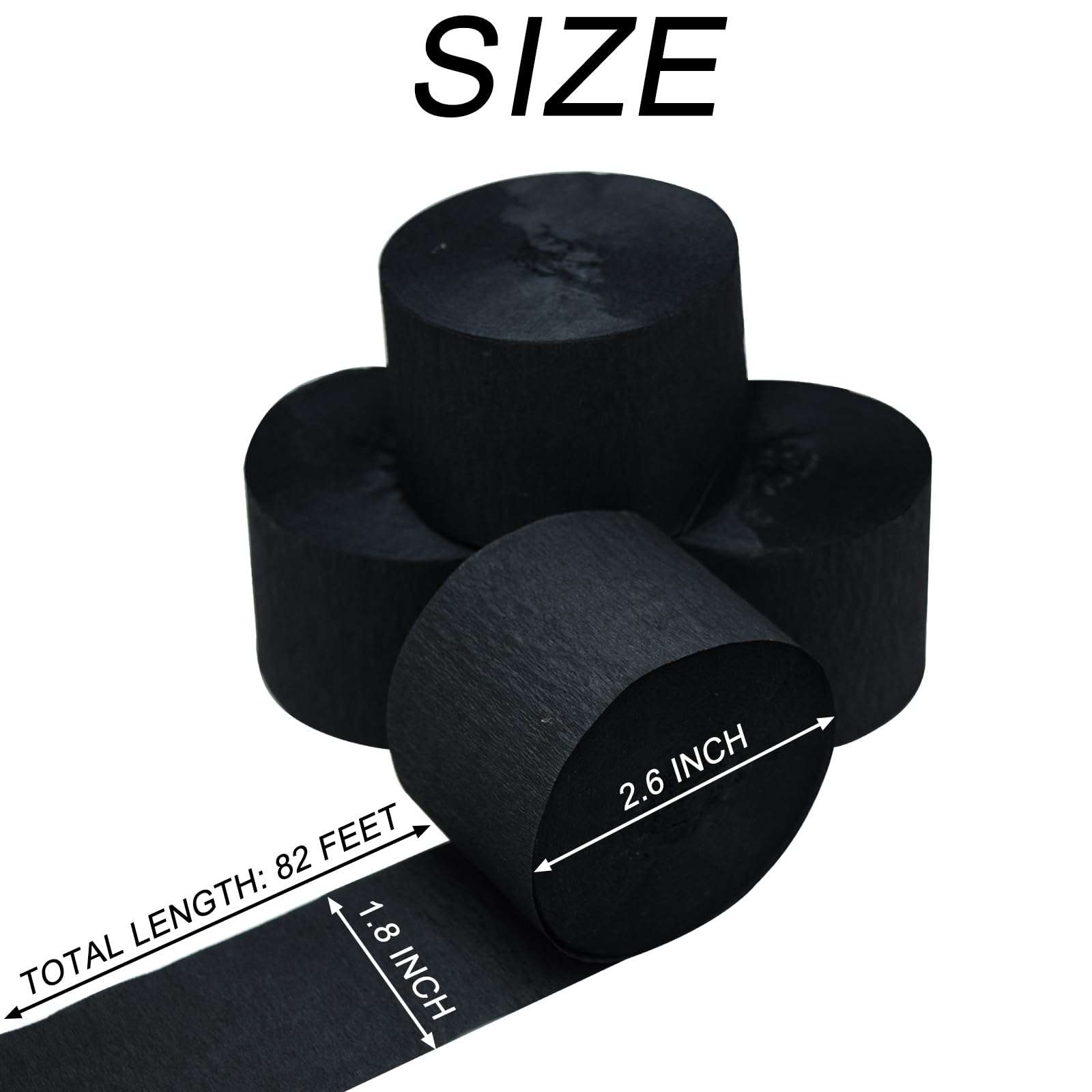 Package includes 4 rolls black crepe paper streamer in total, each roll 82 feet long 1.8 inch wide.