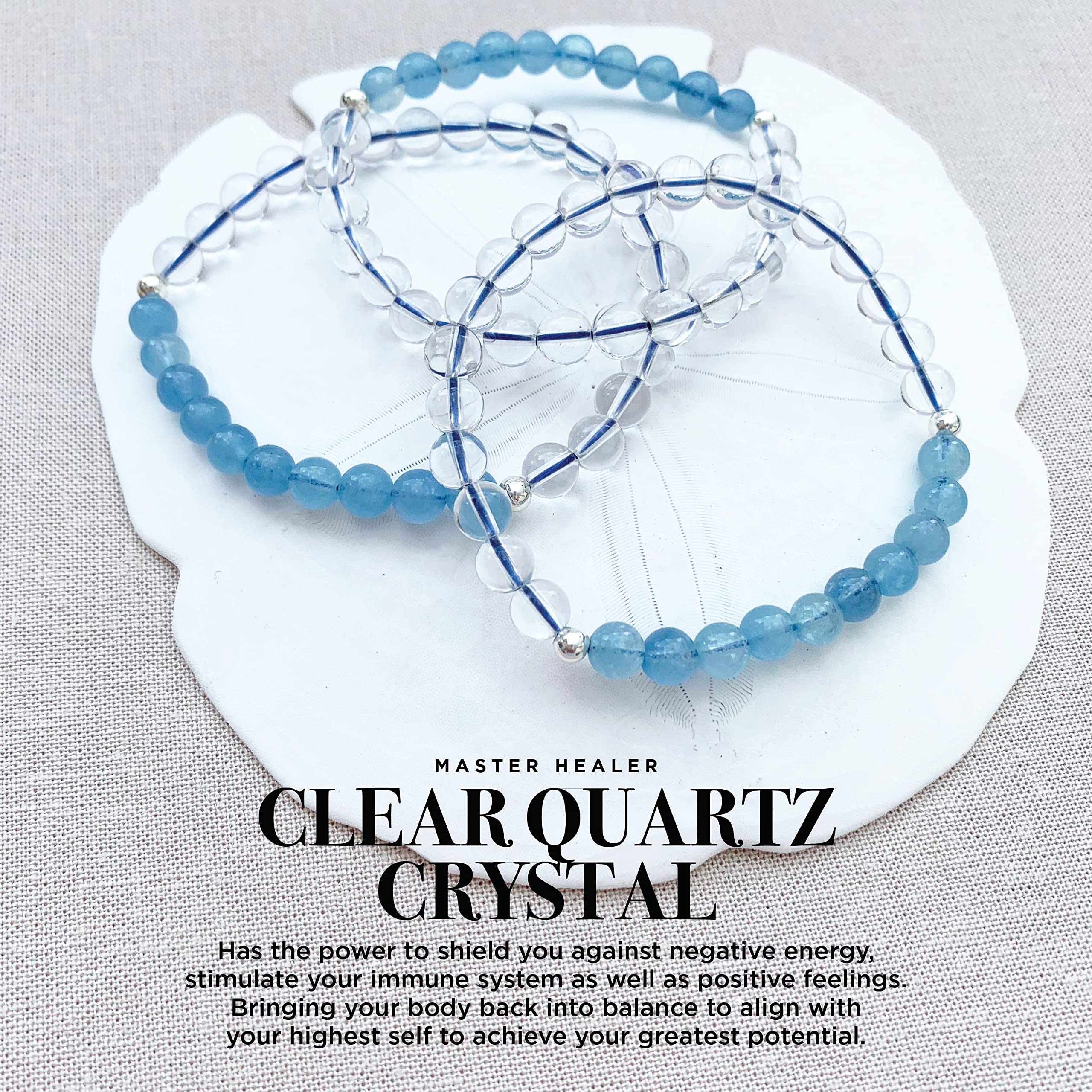 PERFECT GIFT: Natural aquamarine and clear quartz healing stones bracelet is a beautiful handmade gift for anyone man or woman who loves unique, quality jewelry. Itβs a perfect gift for a bridal shower, bridesmaid gift, birthdays, motherβs day, Christmas and Hanukkah.
