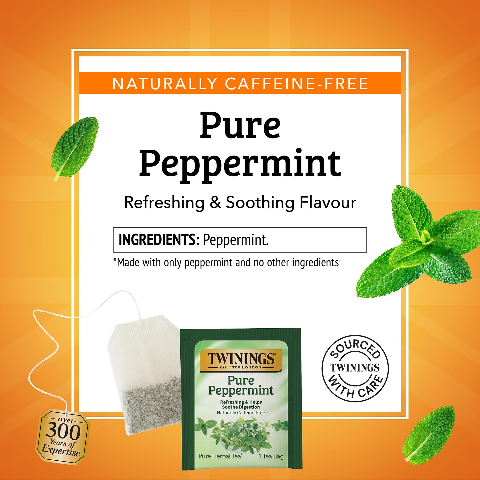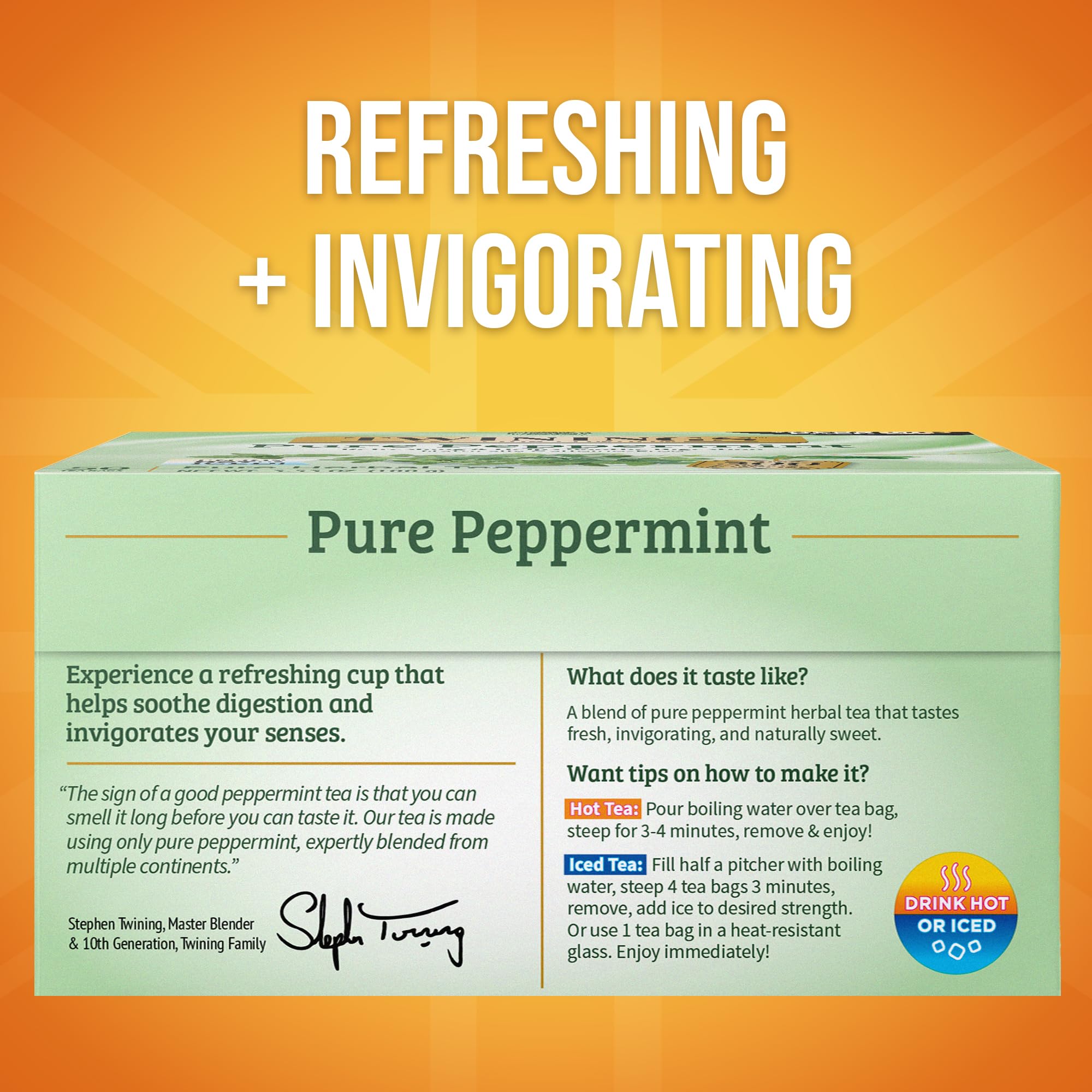 PURE PEPPERMINT TEA: Refreshing herbal tea expertly blended using only 100% pure peppermint to deliver an invigorating tea with an uplifting aroma and fresh mint taste; Caffeine Free Herbal, 50 Count, Pack of 8