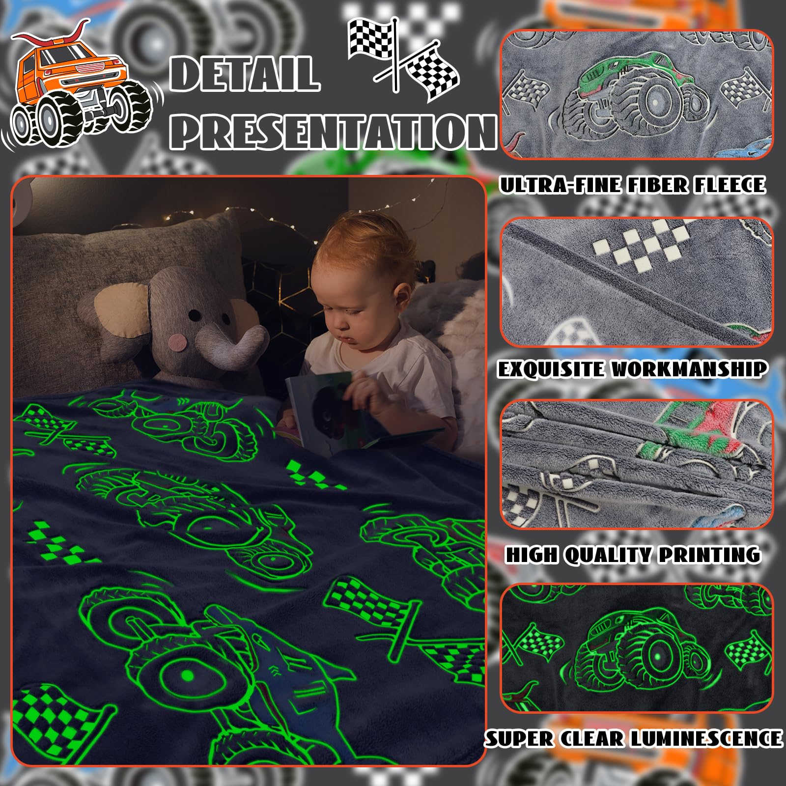 【UNIQUE GIFTS FOR KIDS】The trucks cars blankets are great birthday gifts for a boy or girl who loves trucks, excavators, cement trucks, tractors and construction sites. It is not only stylish and gender neutral for boys and girls, but also glowing in the dark. Kids can enjoy the magical glow in the dark and add fun to the night.
