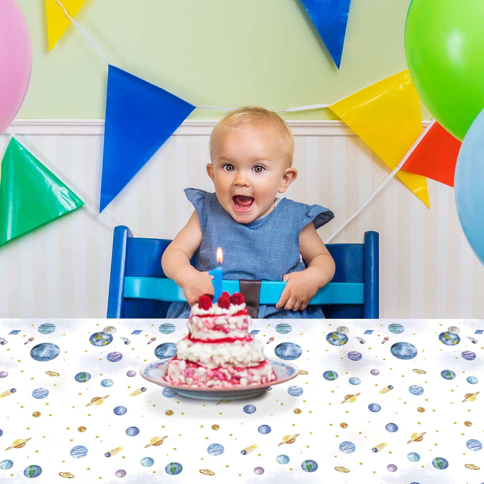 Quality material:These space theme first trip around the sun table covers are made of quality thick plastic material, which can hardly tear, lightweight and portable, waterproof and can protect your table from dirt and scratches.