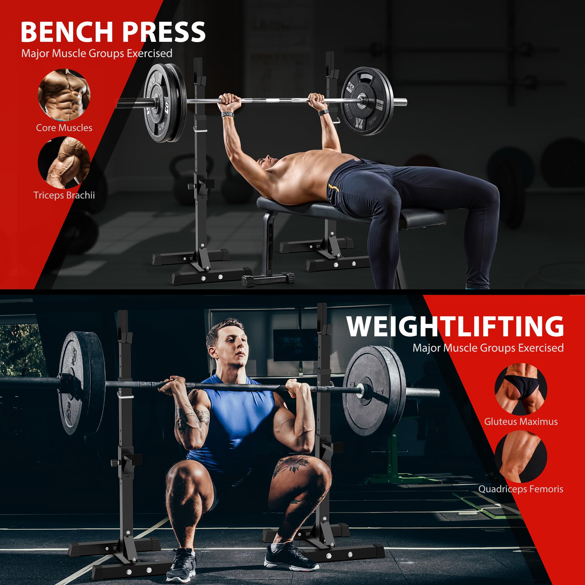 【13 Adjustable Safety Spotter Arms for Total Protection】 Each side comes with 13-position adjustable safety spotters, allowing precise height customization to match different exercises and user heights. Easily set the perfect catch point for fails or reracks, so you can train safely without a spotter
