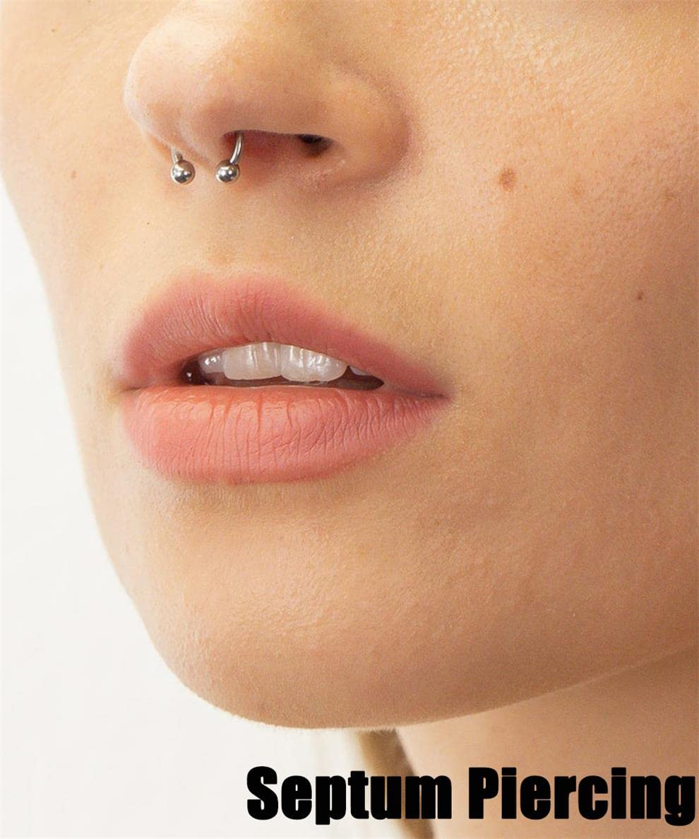 【7 PAIRS of 16G HORSESHOE RINGS SET in DIFERENT SIZES】Regular gauged: 16Ga/1.2mm, Ball size : 3mm, Inner diameter of hoops from 6mm, 7mm, 8mm, 9mm, 10mm, 12mm and 14mm; Different size of small body piercing jewelry multipack for multiple pircing, Good chioce for septum, smiley, nose, nostril, lip and labret piercing, Also practical as cartilage earrings, helix earrings, tragus earrings, rook earrings and daith earrings