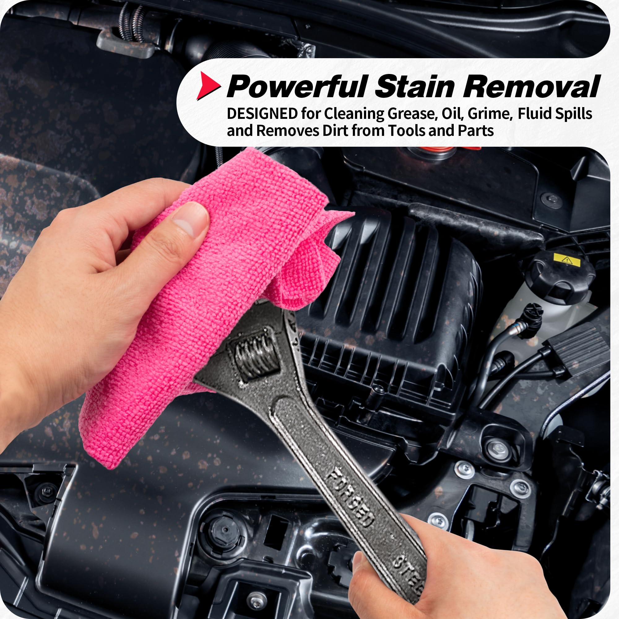 Unmatched Cleaning Power & Easy Care: The Micro fibers provide an incredible ability to tackle tough stains, making them suitable for various industrial applications such as grease guns and wiping down machinery. After use, simply toss them in the washing machine, thanks to their durable construction that prevents wrinkling, stretching, or shrinking. These features not only make these cleaning towels more environmentally friendly and long-lasting but also a cost-effective choice.