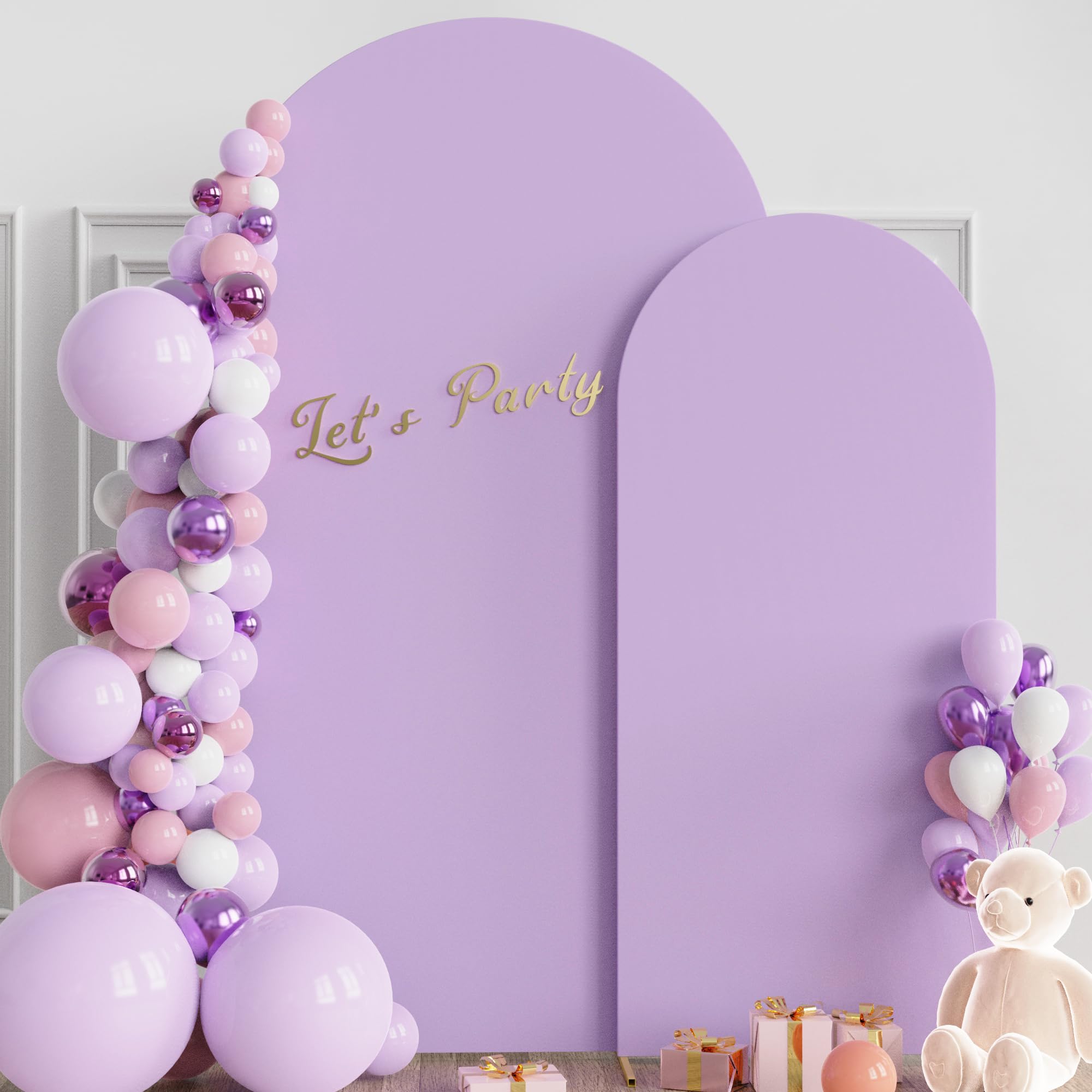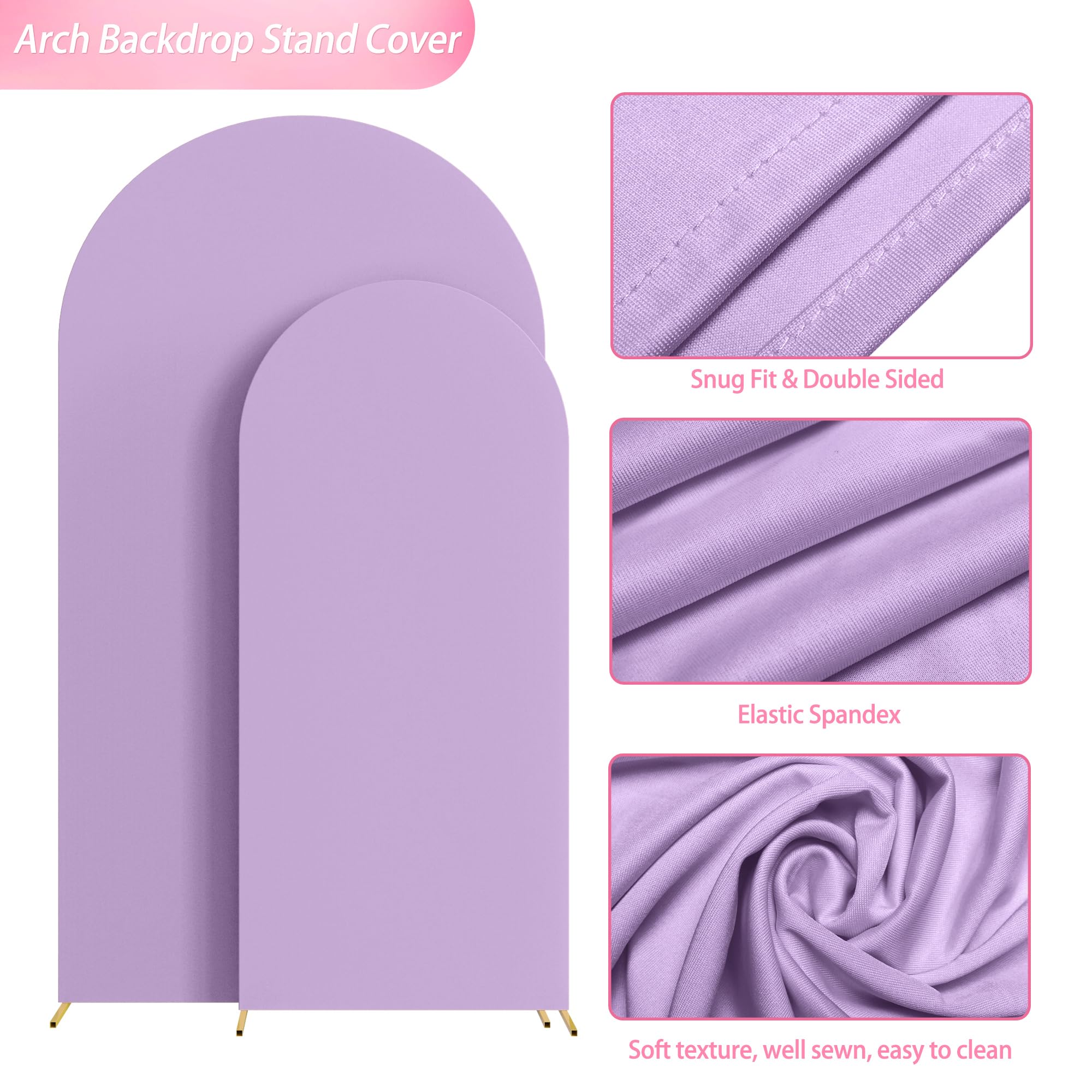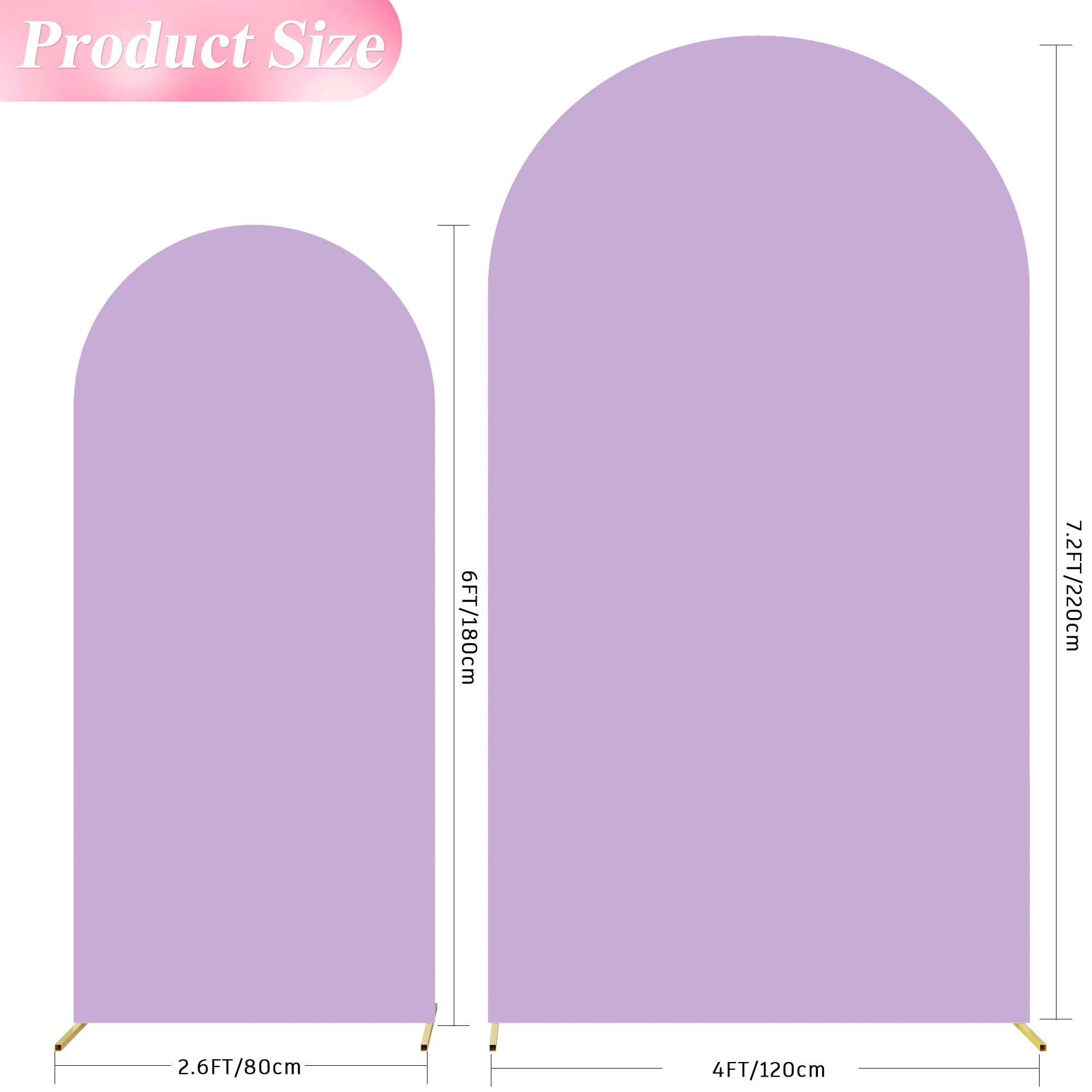 【Arch Covers Package】2 Piece wedding arch cover (Arch stand Not included). Material: Spandex. Color: Lavender. Size: 7.2 x 4ft (HxW) / 6x2.6ft (HxW). Decorate your party backdrop with our wedding arch covers to create an epic background for your celebration.