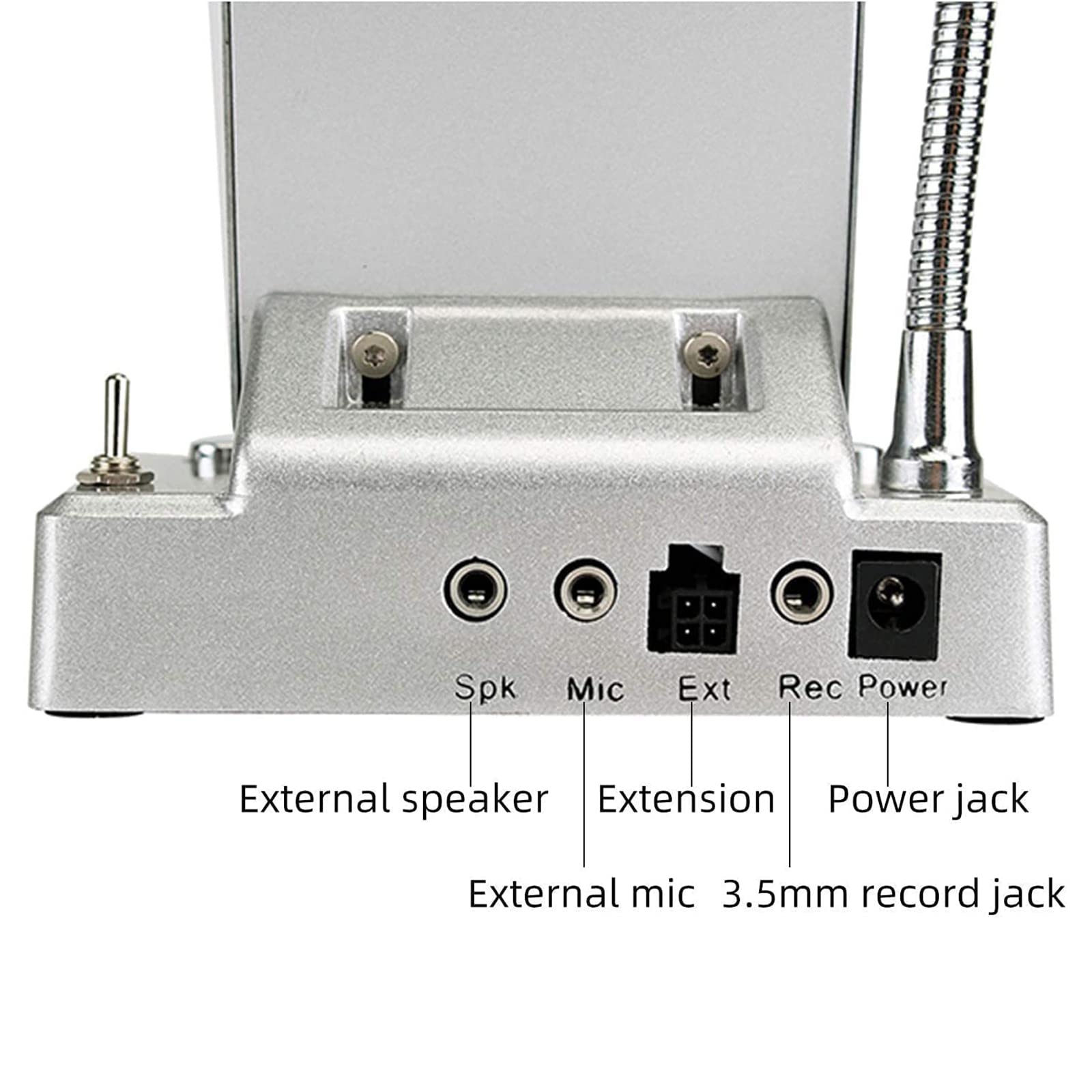 Specifically two way voice signals output design for your business system recording need ;recording jack can be output both inside and outside