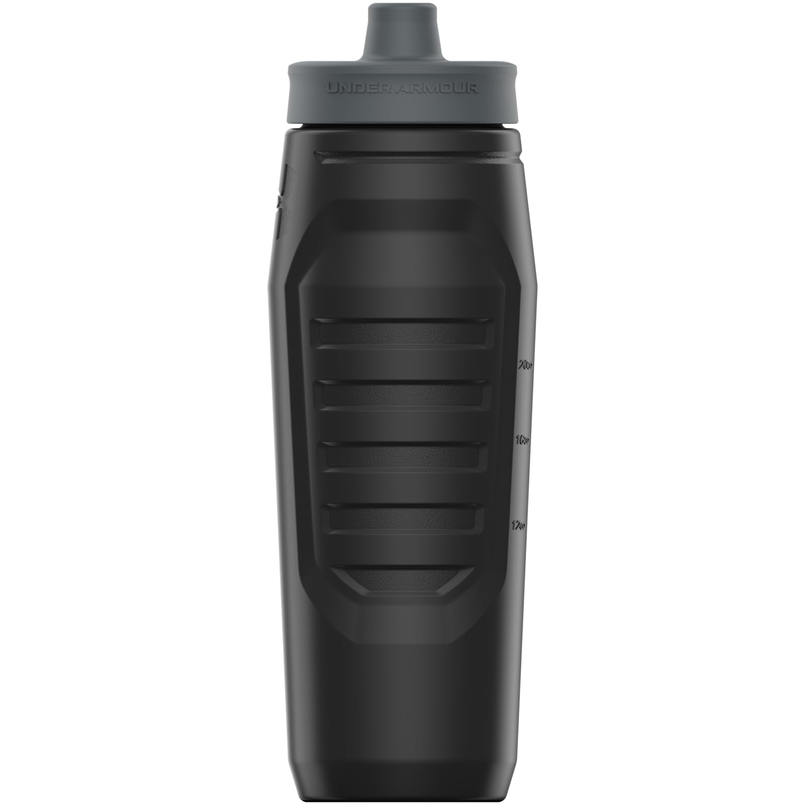 The Under Armour Sideline Squeeze Water Bottle is made for sports activities or everyday use. This sports squeeze water bottle holds 32 ounces, making it handy as a football water bottle, baseball water bottle, soccer water bottle, or hockey water bottle. Designed with a quick-shot lid and one-way valve, this squeeze water bottles sports solution helps you stay hydrated on-the-go. This football water bottle for boys and girls offers one-hand operation for those times when you need to hydrate without having both hands free. Its practical design includes marked measurements in ounces and milliliters, allowing you to track your water intake. The Under Armour Sideline Squeeze Water Bottle is also dishwasher safe (top rack only) and features a self-draining cap to prevent puddles. Crafted from BPA and lead-free materials. Whether you're at the gym, on the field, or just out and about, this 32 oz squeeze bottle meets your hydration needs with ease. Stay refreshed during soccer practice, a baseball game, or a hockey match with this essential water bottle sports gear.