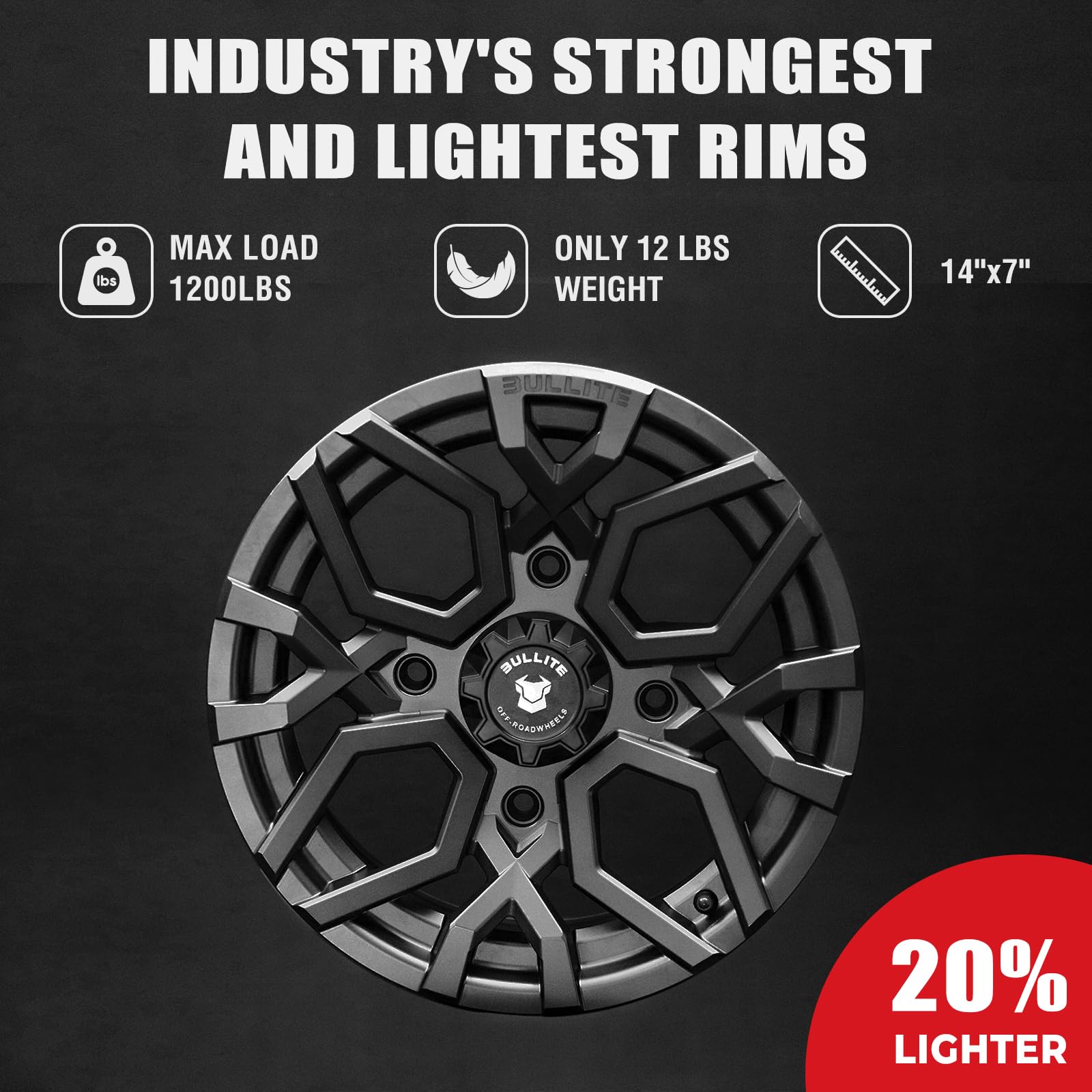 Sizing and Packaging: Our ATV Wheels Bullite Rims are 14" Diameter, 5+2 Offset, 14x7 Size, 4x137 Bolt Pattern, 112 mm Bore. Valve Stems are Included and Removable bolts on lip. We recommend buy 4 pcs for a set and professional installation as instructions not provided. For your safety, retorque all nut hardware after 25-50 miles. Our products will arrive in a single box.