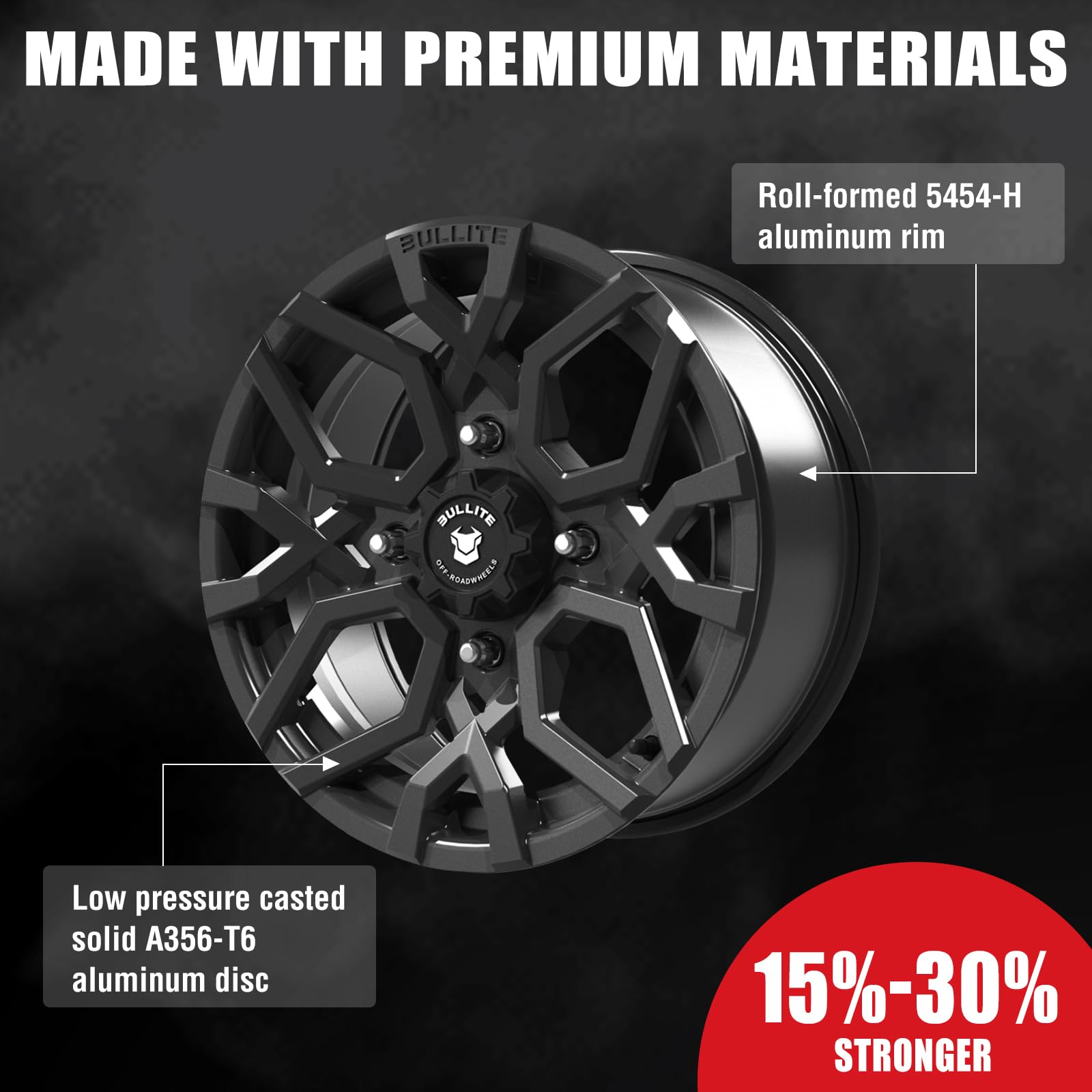 Bullite Wheels Offroad UTV ATV SXS Rims: Fits machines with 4x137 Bolt Pattern with a hub bore less than 112mm. Works with various ATV, UTV, SXS, Quads. Ensure fitment compatibility by checking that your machine's bolt pattern, center hole, offset, and stud thread size match that of our ATV wheels and nuts prior to making your purchase.