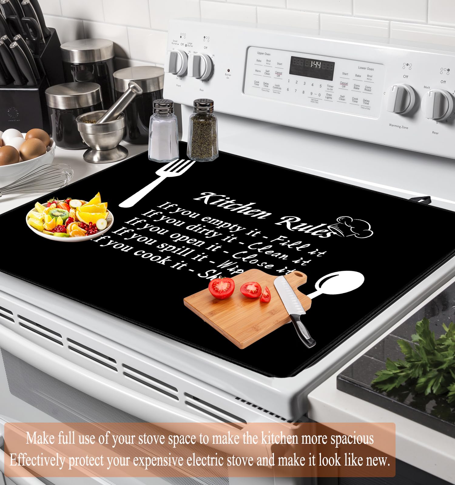 ✔ Electric Stove Cover Design✔ : Extra large stove top cover for electric is perfect for the kitchen, it will be very convenient to use when preparing food, the classic black color goes well with the kitchen and the electric stove, the mat also comes with two hooks and can be hung on the wall, or Fold it up and put it in the cupboard without taking up too much space.