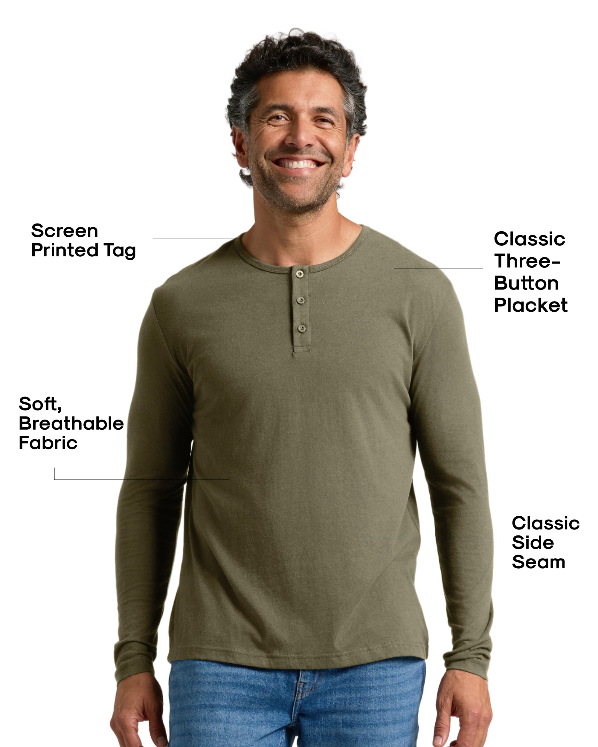 ALL-DAY COMFORT, TAG-FREE: Long sleeve men's t-shirts built for easy wear from workdays to weekends. Our classic crew and mens henley shirts have tagless prints with classic side seams that keep shape with minimal shrinkage (about 5% on low heat).