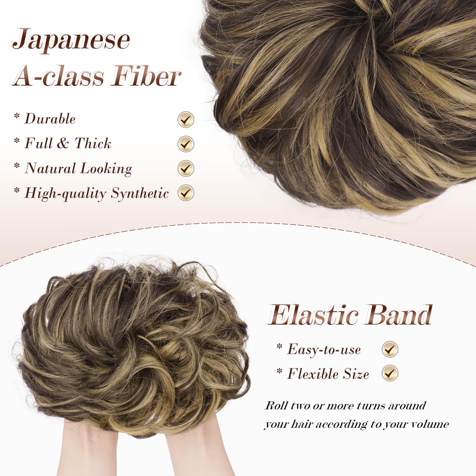 Lightweight & Natural Volumizing Design: Weighing only 1.50 oz per piece, this lightweight messy bun adds instant volume and fullness to thin, fine, or limp hair, perfect for elevating updos, ponytails, or half-up hairstyles. The carefully crafted wavy curly texture looks incredibly natural and soft, making it virtually indistinguishable from your own hair.