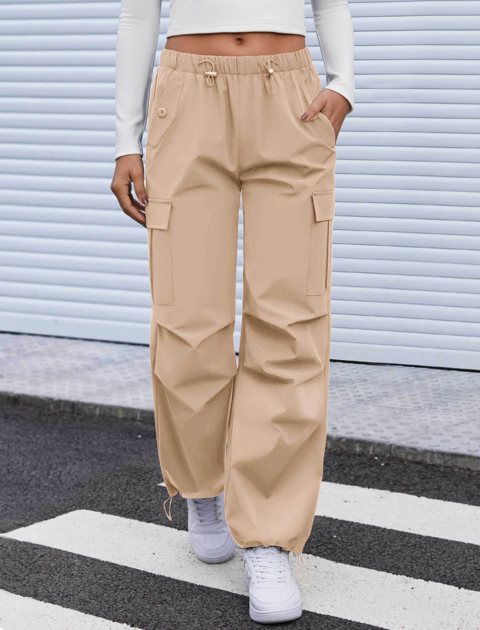 ADJUSTABLE WAISTBAND & BOTTOMS: Featuring an adjustable waistband and cuffs, these mid-waisted parachute pants provide a customizable fit that ensures both comfort and style. Whether you're trekking uphill or relaxing by the campfire, they move with you