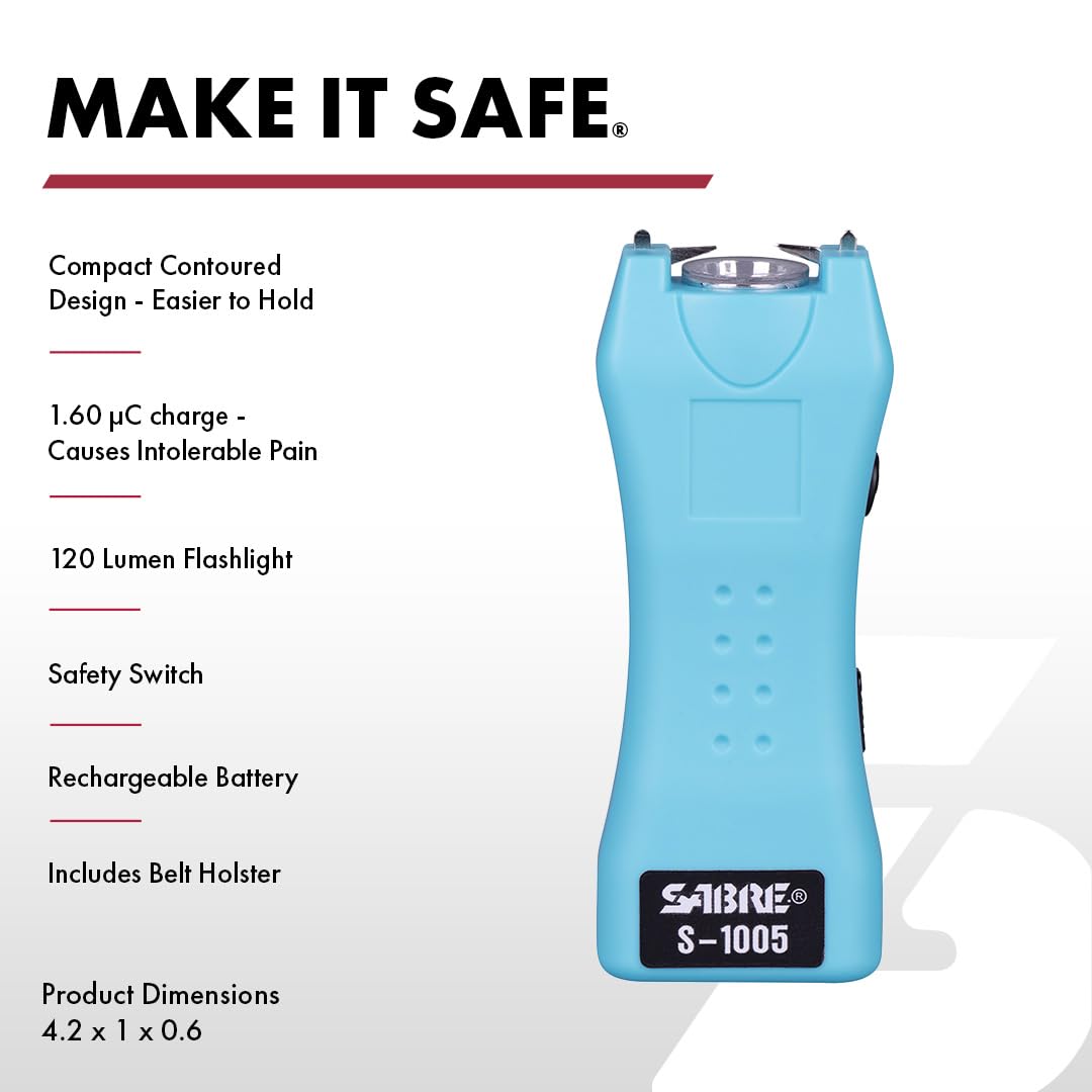 Stay prepared with the SABRE Pepper Spray and 2-in-1 Stun Gun Multi-Range Protection Pack, designed to provide both distance and close-range personal protection when you need options. SABRE is the #1 pepper spray brand trusted by police and consumers worldwide, and every SABRE pepper spray is proudly made in the USA and HPLC tested to help ensure consistent heat and dependable stopping power because not all sprays are created equal. The included pepper spray helps protect you from a safer distance with best accuracy up to 12 feet to support effective facial saturation and a maximum range up to 14 feet, along with up to 10 seconds of spray time, 3X longer spray time than other brands, helping you respond to one or multiple threats. A focused stream helps reduce wind blowback, while UV marking dye assists authorities after use. The ergonomic finger grip supports improved control and aim, and the Fast Flip Top safety helps prevent accidental discharge, while the key ring attachment allows easy carry and fast access when seconds count. For protection up close, the included SABRE Stun Gun delivers a 1.60 µC charge, helping to temporarily incapacitate an attacker by causing intolerable pain according to the Department of Justice, allowing you the opportunity to escape to safety. The stun gun also features a built-in 120-lumen LED light to help illuminate your path during emergencies such as power outages or for everyday tasks like walking the dog at night, and it is rechargeable with an included charging cable and belt holster for convenient access or storage in a purse or bag. Backed by 50 years of SABRE innovation and leadership in personal safety, this multi-range protection pack delivers dependable tools, trusted performance, and confidence built for real life.