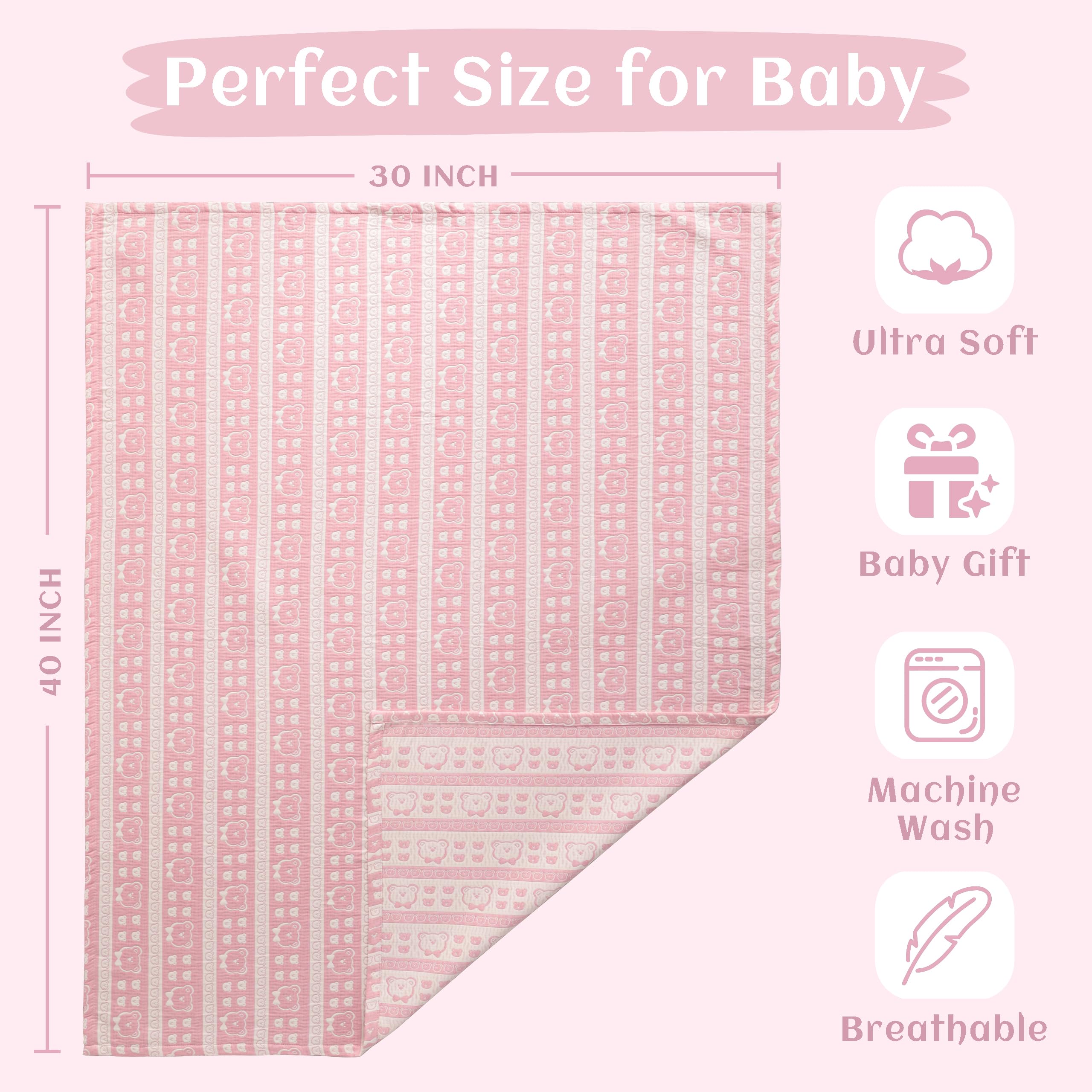 Classic reversible design: This blanket is designed reversibly which is very convenient and durable. The front is the pink background dotted with white bear patterns. The back is the white background dotted with pink bear patterns.