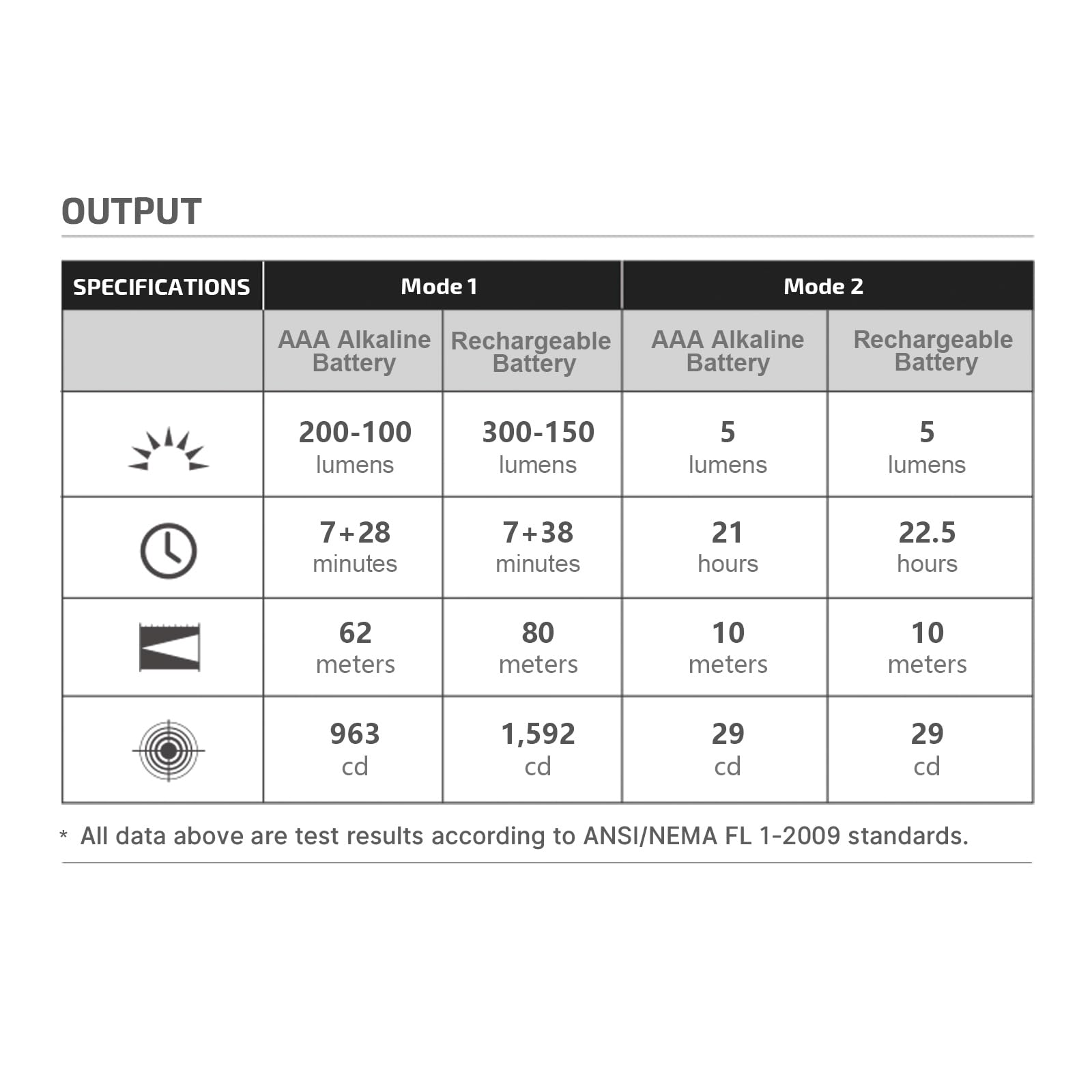 [Versatile Power Choices]: The I3T 2 runs on a standard AAA alkaline battery. What's more, you can use a rechargeable battery to boost output up to 300 lumens