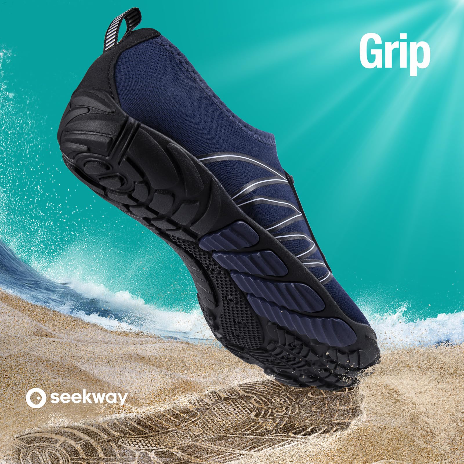 All-round Protection:Thick rubber soles and a toe cap keep your feet completely protected from sharp objects and provide great cushioning. The 3D non-slip treads provide exceptional grip even in slippery conditions. This makes it a great choice for outdoor sports.