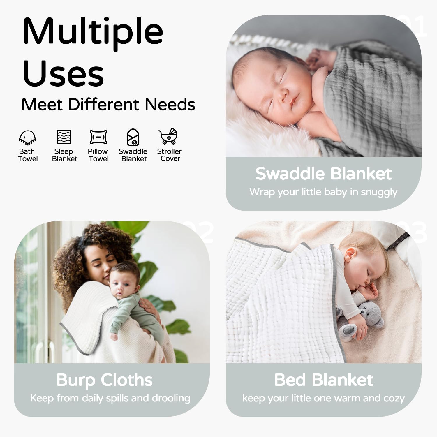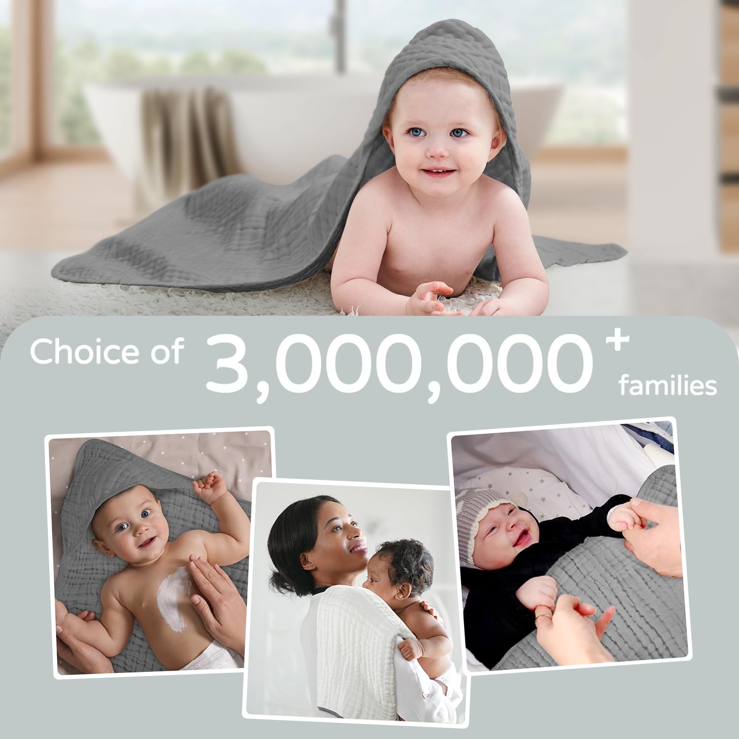 [Soft and Absorbent] - 100% high quality muslin organic cotton, the best fabric for babies, makes the baby bath towel super soft than regular cotton towel. It absorbs the water off baby quickly and keeps baby warm after baths.
