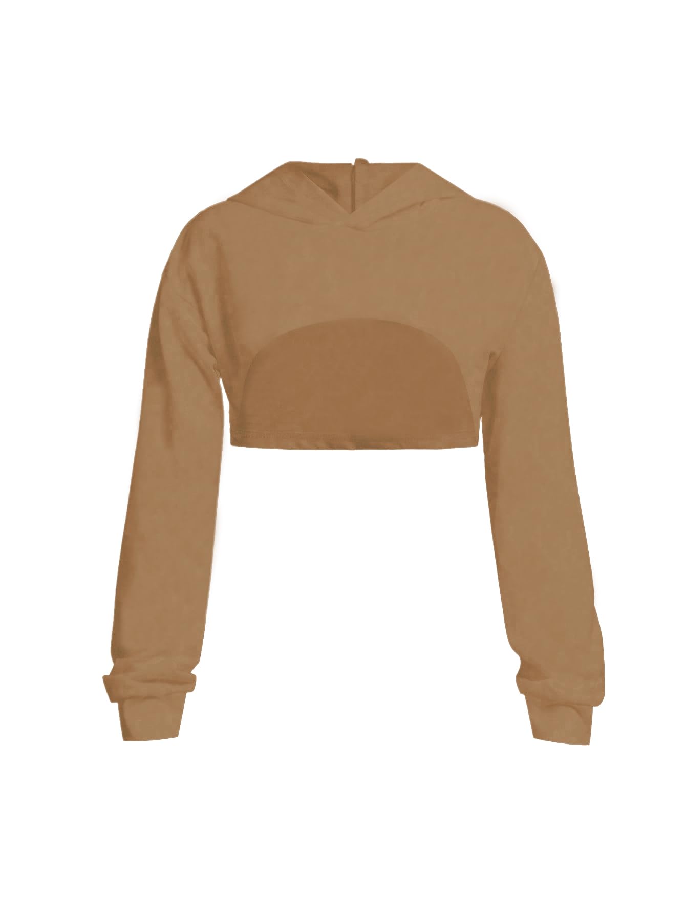 Design: Drop shoulder, pullover, long sleeve, hooded, high low asymmetrical hem, solid color, cropped length, solid color, casual style
