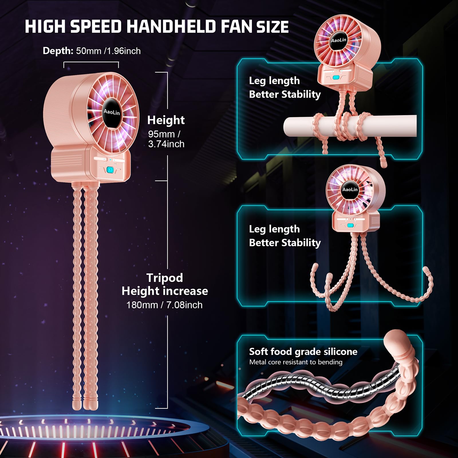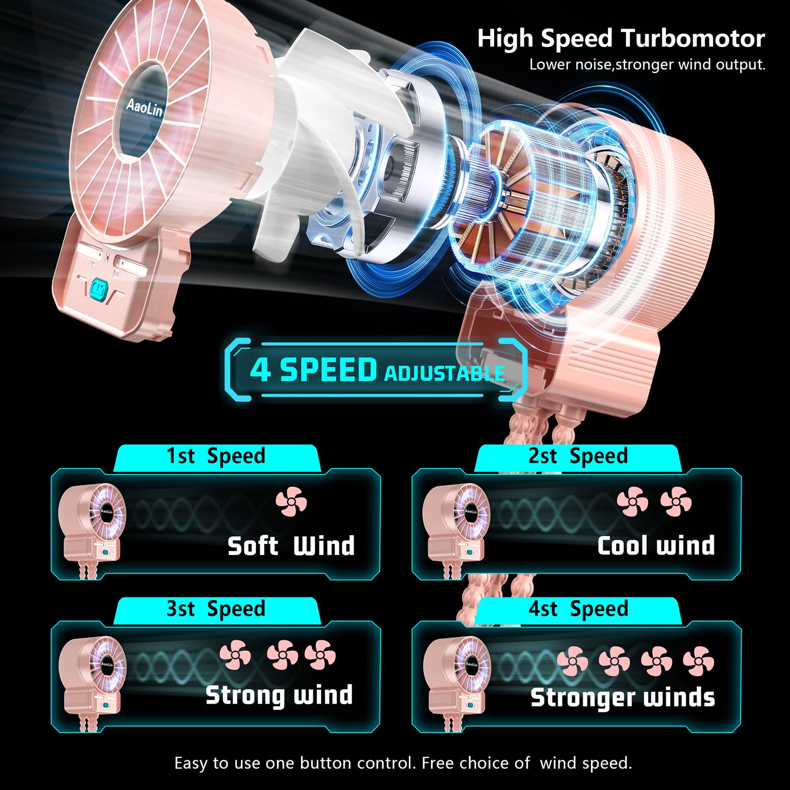 【4 Speeds and Quiet】-AaoLin small portable fan built-in high speed brushless motor,It can provide powerful airflow but is quiet.It comes with 4 speeds for different purpose,Its highest gear has a speed of 6600rpm.Summer gifts for kids,travel beach cruise ship essentials,very practical stroller accessories!