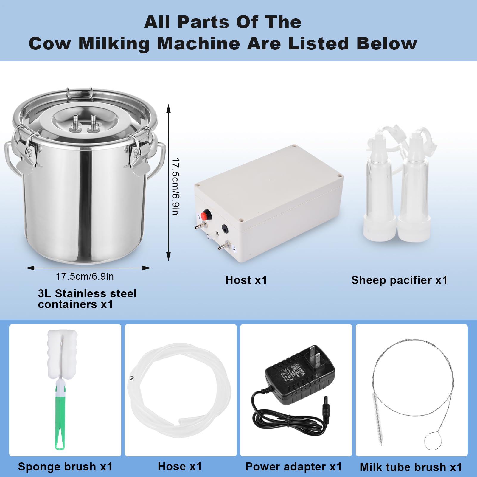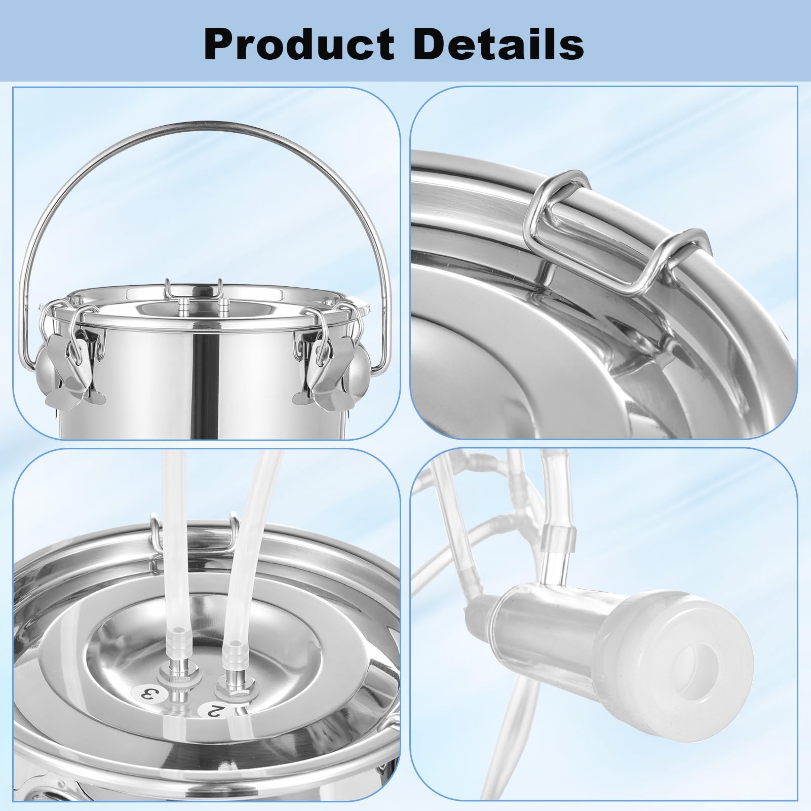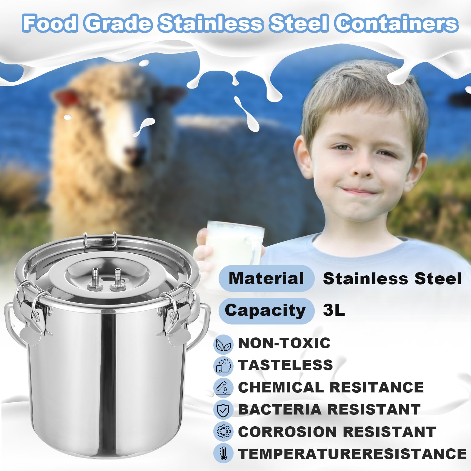 【Healthy & Secure】:Our 0.8 Gal / 3 L bucket is made of food-grade stainless steel and comes with 43.3-inch suction tube, 47.2-inch milk inlet tube and air inlet tube. This ensures that the originals taste of the milk is preserved, providing you with pure and clean milk to enjoy