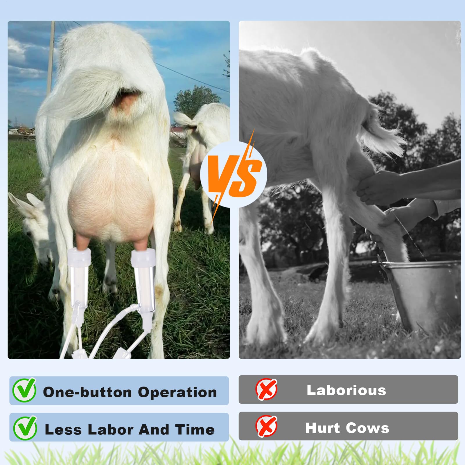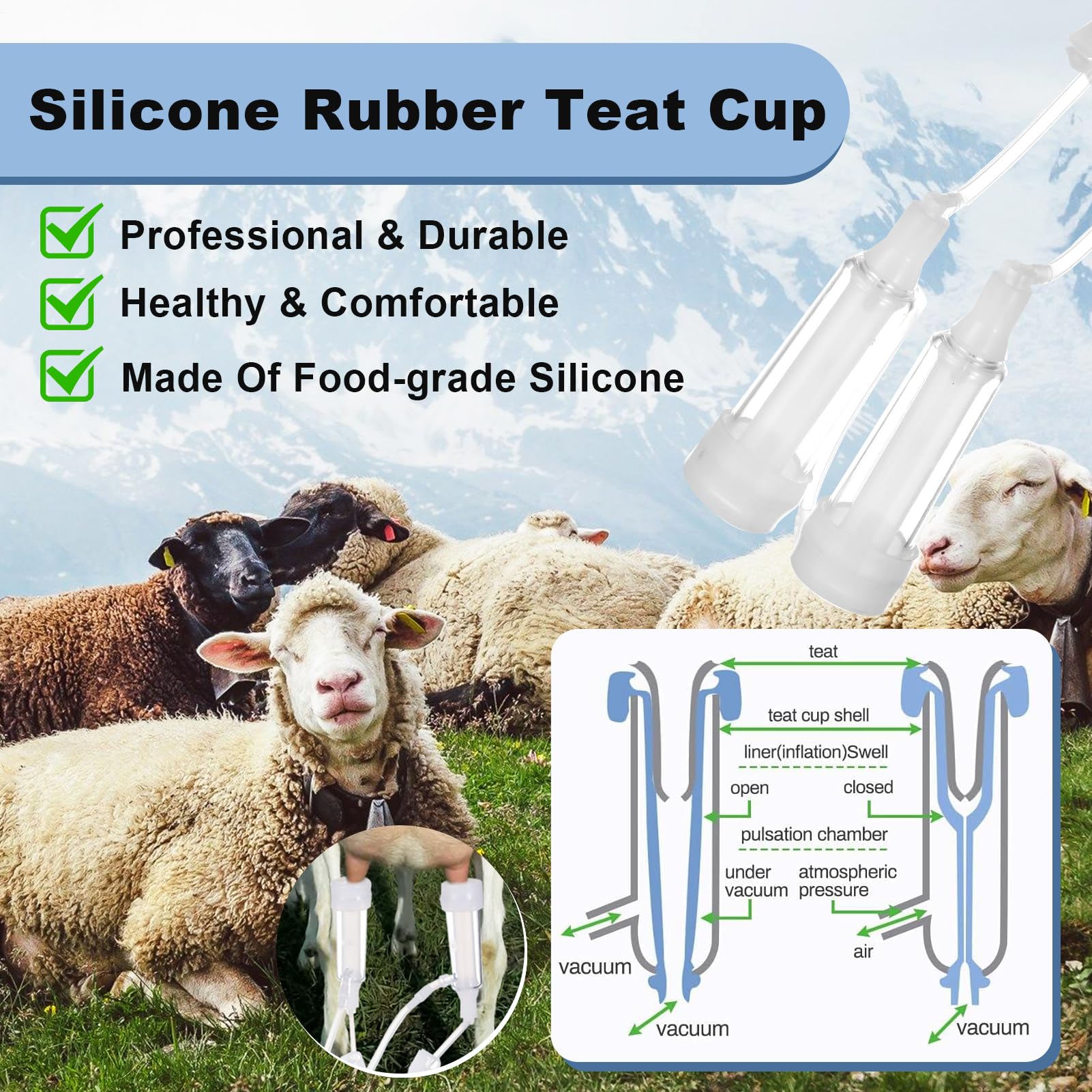 【Treat Your Goats Right】:Our goat milker has a vacuum pulsation system that operates similarly to a calf's sucking action. The vacuum pressure is adjustable from 35 to 45 kPa. The milk cups are made of silicone with a smooth inner surfaces that provides a comfortable massage for your goats without causing them any harm. This leads to less stress for the goats and increased milk production for you