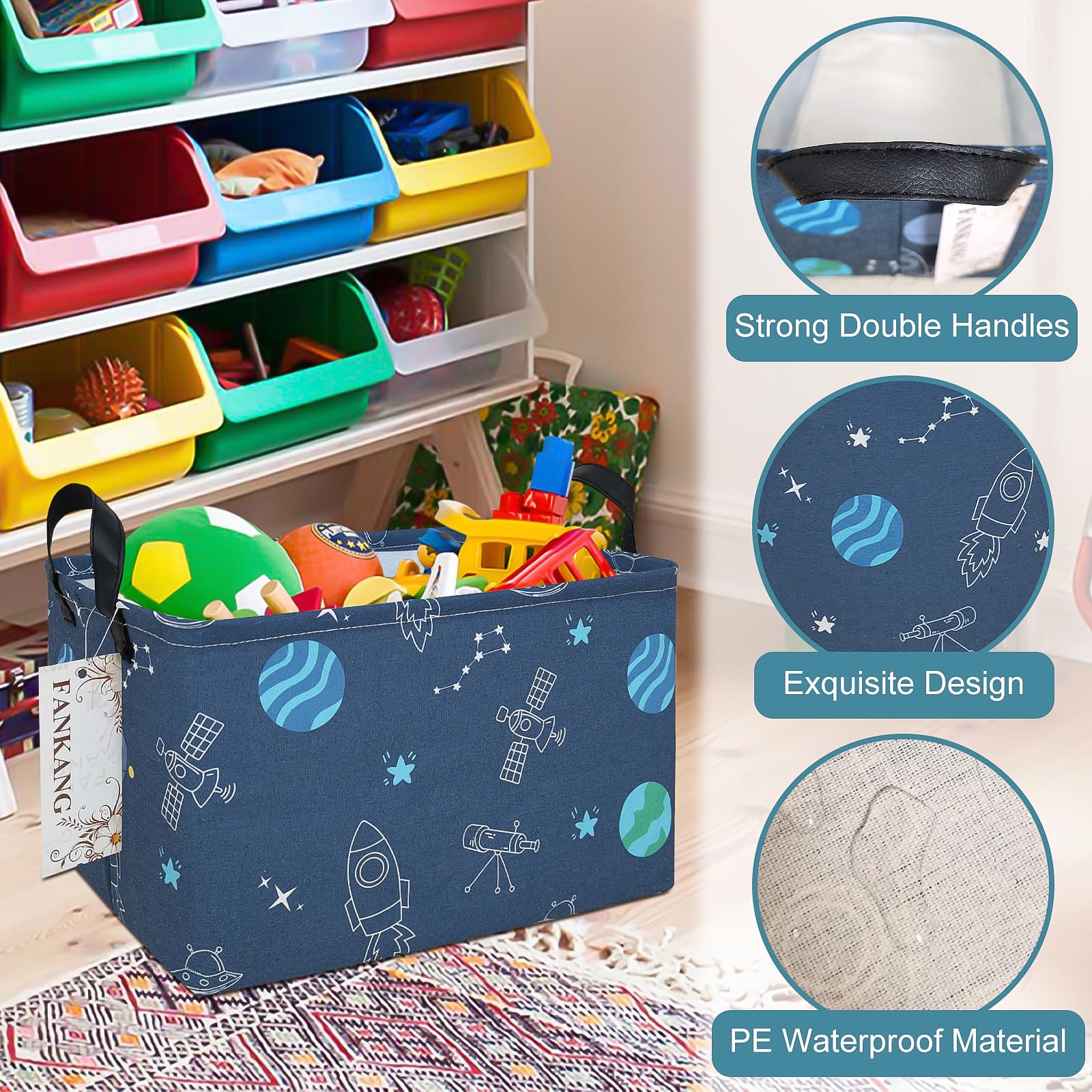 This storage bag suitable for adult, teens, kids, children; suitable for toys, books, clothes and other stuff, suitable for home and school. Why choose our large storage basket? - Spacious capacity, store more stuff. - Practical side handles for easy toting. - Collapsible design for compact, convenient storage. - Cute lovely animal pattern design. - Multiple function, suitable for any place. Features: - Perfect organizer for play rooms, allowing for the storage of toys, books, blocks, stuffed animals, toys with multiple pieces, train sets, or board games. -reading materials, as well as in the bathroom for towels, or as a laundry hamper.