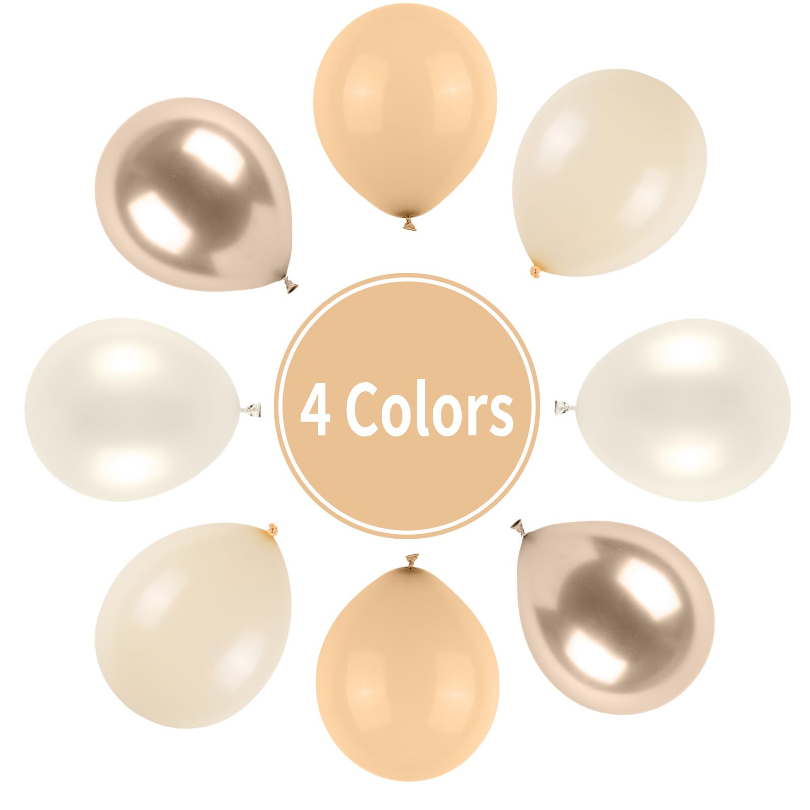 【12Inch Party Balloons Set】: The neutral balloons set includes 20pcs retro beige balloons, 15pcs matte beige balloons, 15pcs pearl sand white balloons, 10pcs champagne gold balloons, 1pc silver ribbon. 61pcs in total. Elevate your celebrations with our birthday party balloons!