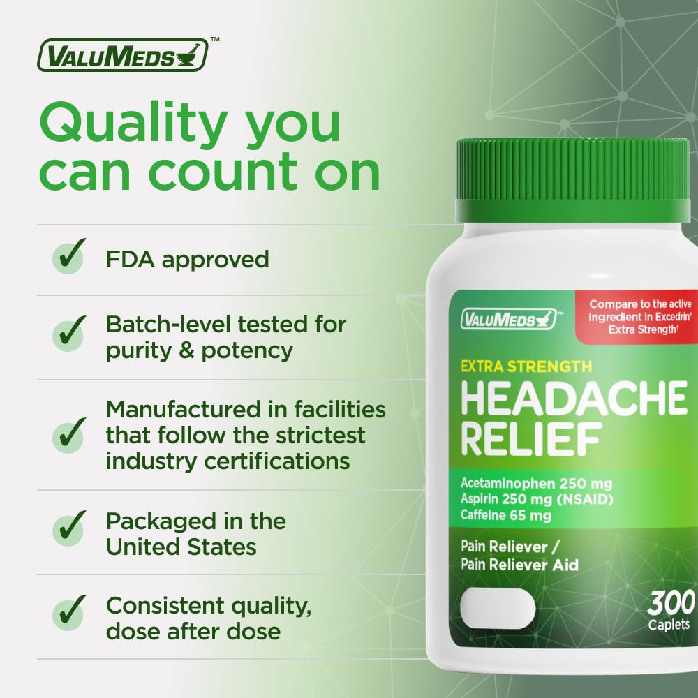 🧴 Value Bottle 300 Caplets for Long-Term Relief: Whether you take headache medicine occasionally or rely on it daily, this large-count bottle ensures you’ll have plenty on hand. A great choice for home, travel, or office use, especially when you're tired of paying more for fewer pills.
