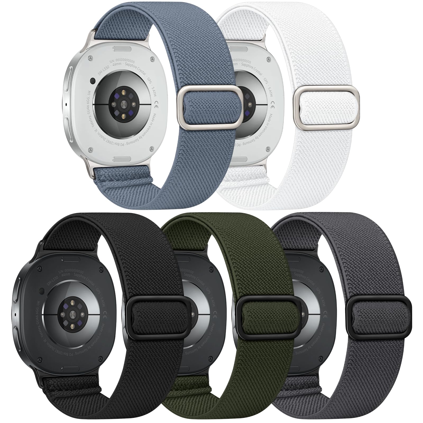 【Stretchy & Adjustable】The galaxy watch 4/galaxy watch 5 elastic band with stretchable design, allowing you to adjust the size of the wristband as you wish. The flexible and elastic nylon strap fits perfectly on your wrist for a comfortable wearing experience. Suitable for both women and men with wrist sizes from 4.5" to 8.7