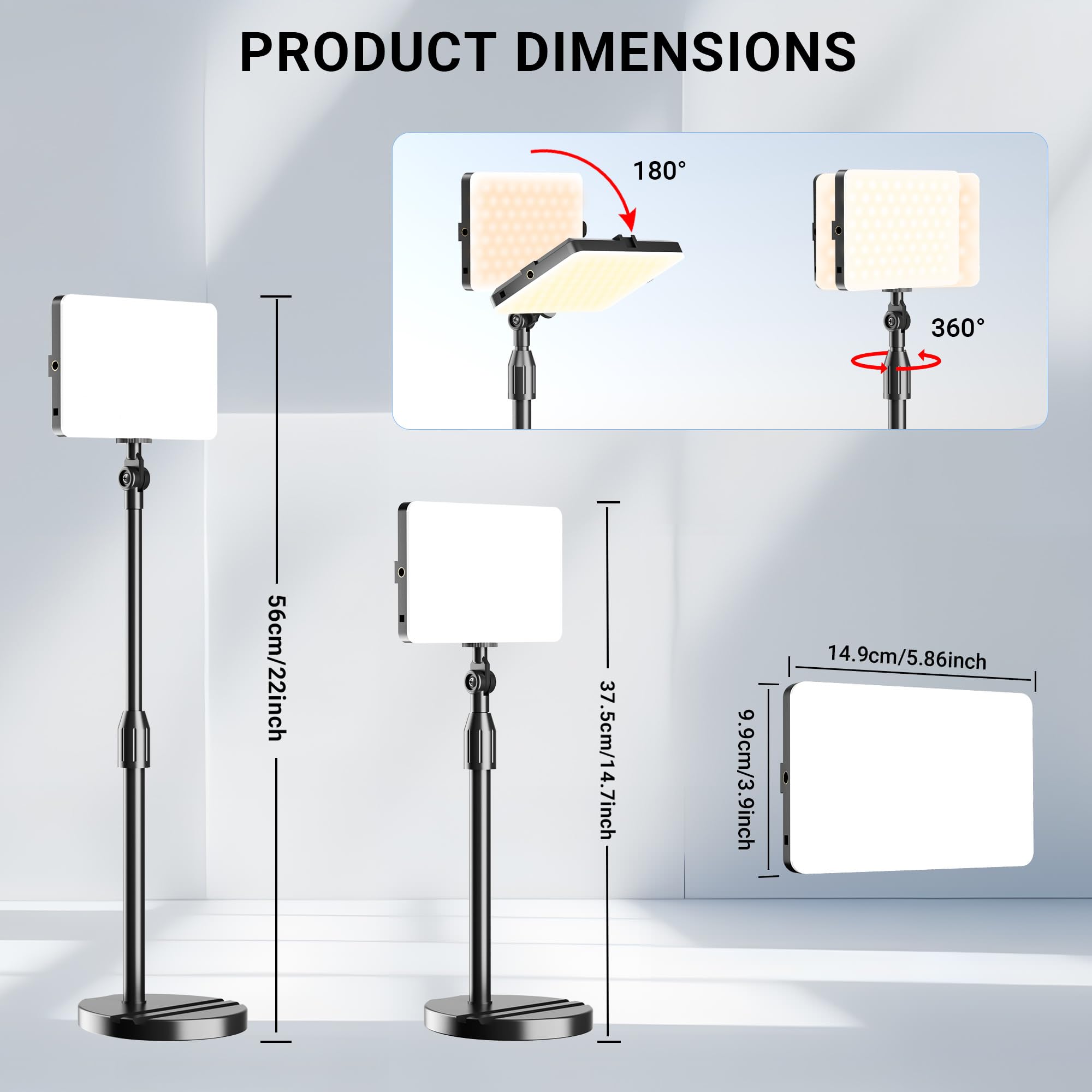 [ Height&Angle adjustable ] The light stand is telescopic from 37.5 inch to 22 inch, the height is above a computer monitor, and the angle is adjustable for your application