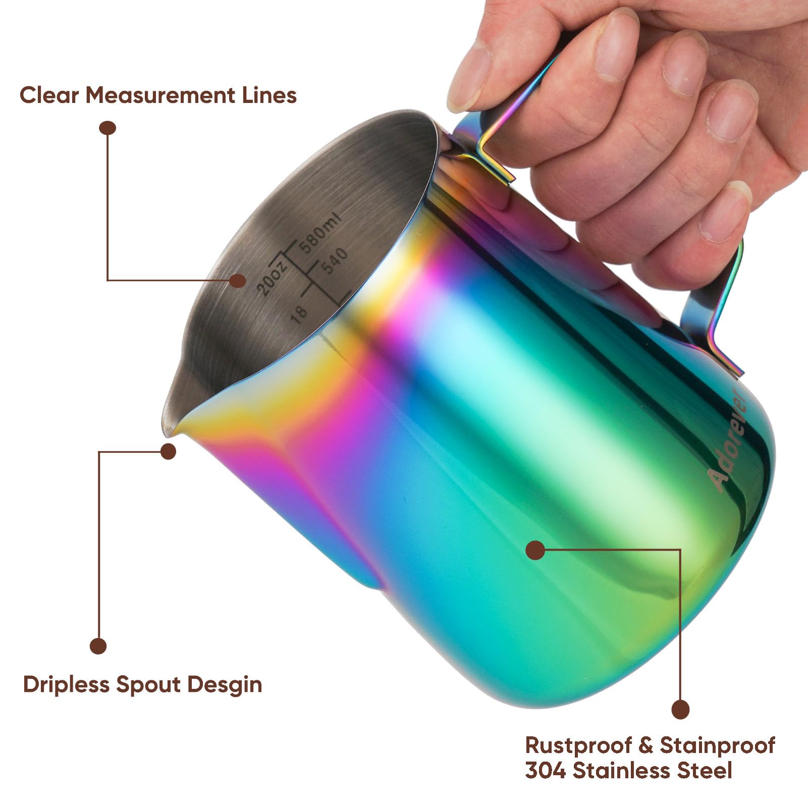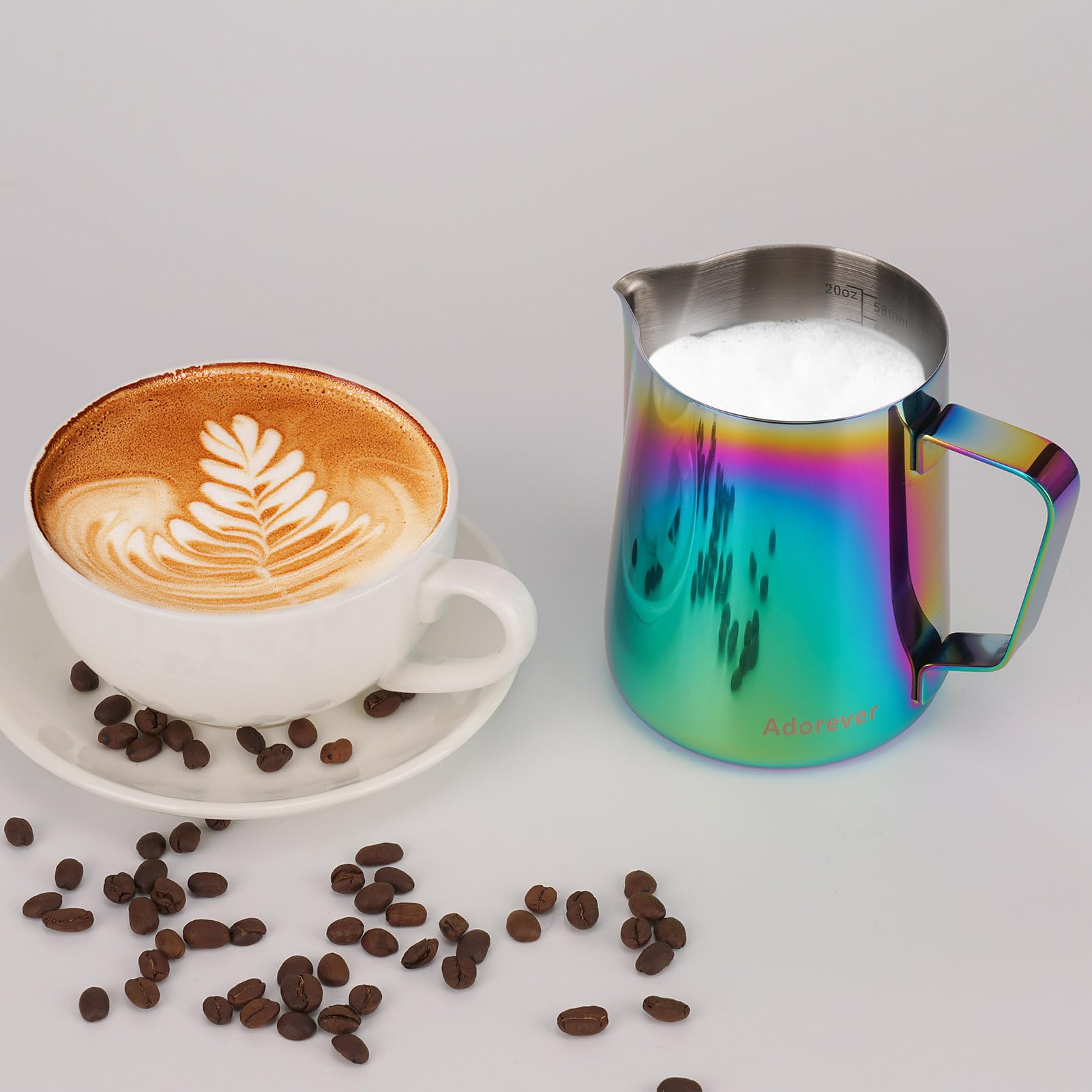 Point-Mouth Design: Can prevent liquid leaking from the jug and make the coffee pattern pretty. Offer 12oz/20oz/32oz milk jugs to satisfied different customers demands, buy one at home or office for you and a couple of friends.