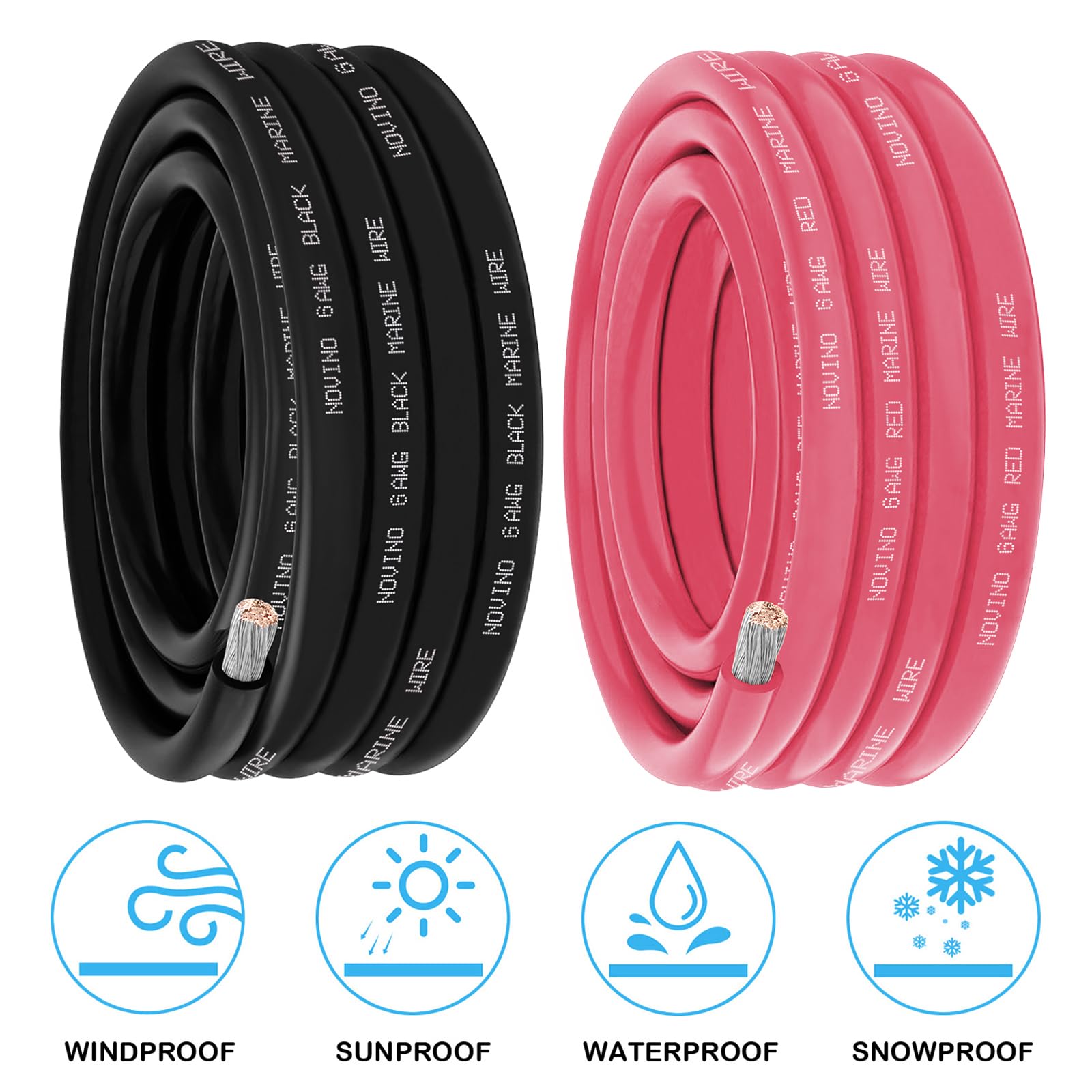 Heavy Duty 6 Gauge Marine Wire:Our 6 AWG marine wire is made of tinned copper to make sure good conductivity,corrosion resistance, high durability,flexibility,stability for a long-lasting performanc