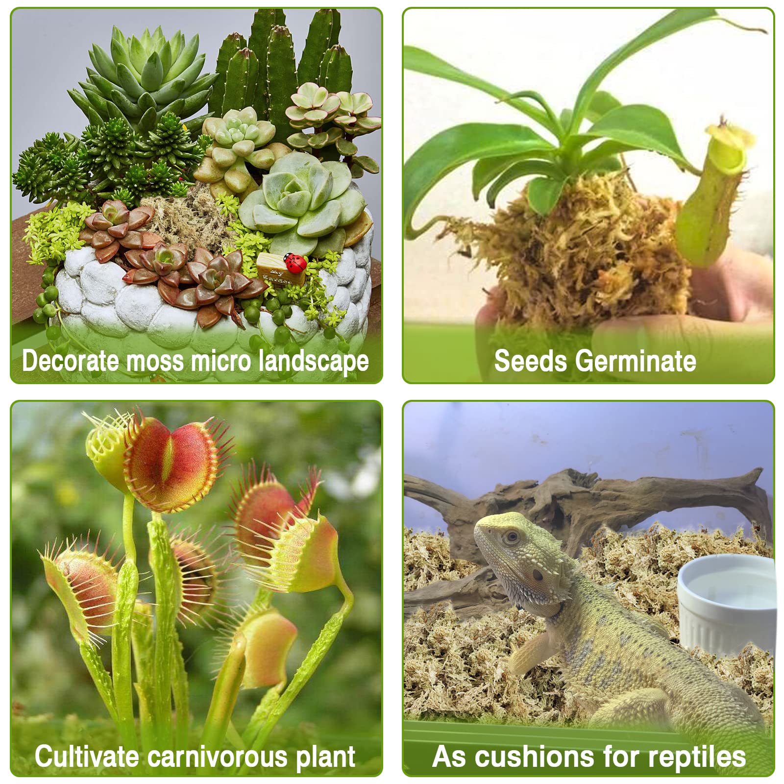 Wide Application: You can use these orchid moss as nutritional succulent soil for plants, fern, venus flytrap plants, carnivorous plants, also as layering decoration for succulents, or use as egg-laying and incubation medium, substrate for reptile or amphibians terrariums