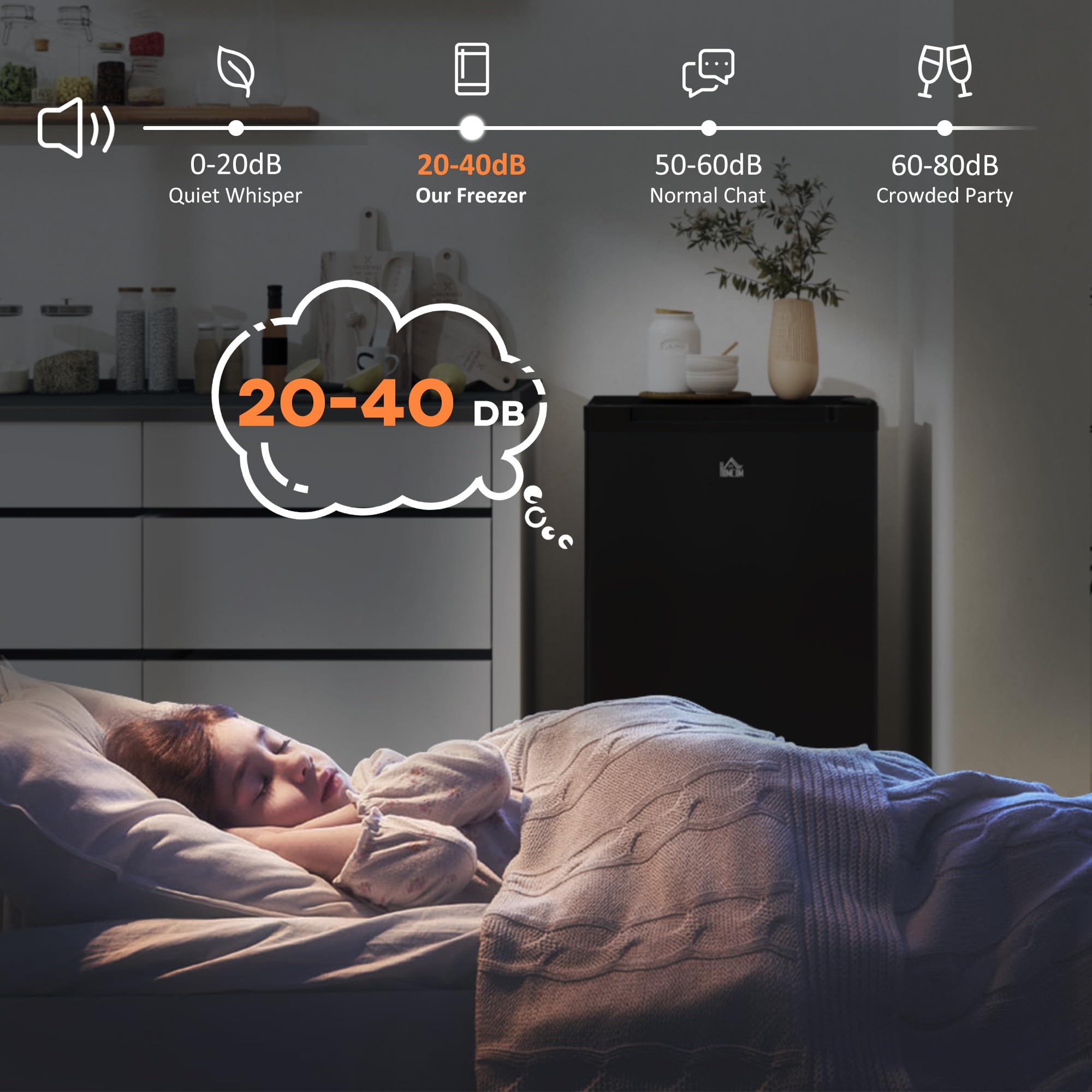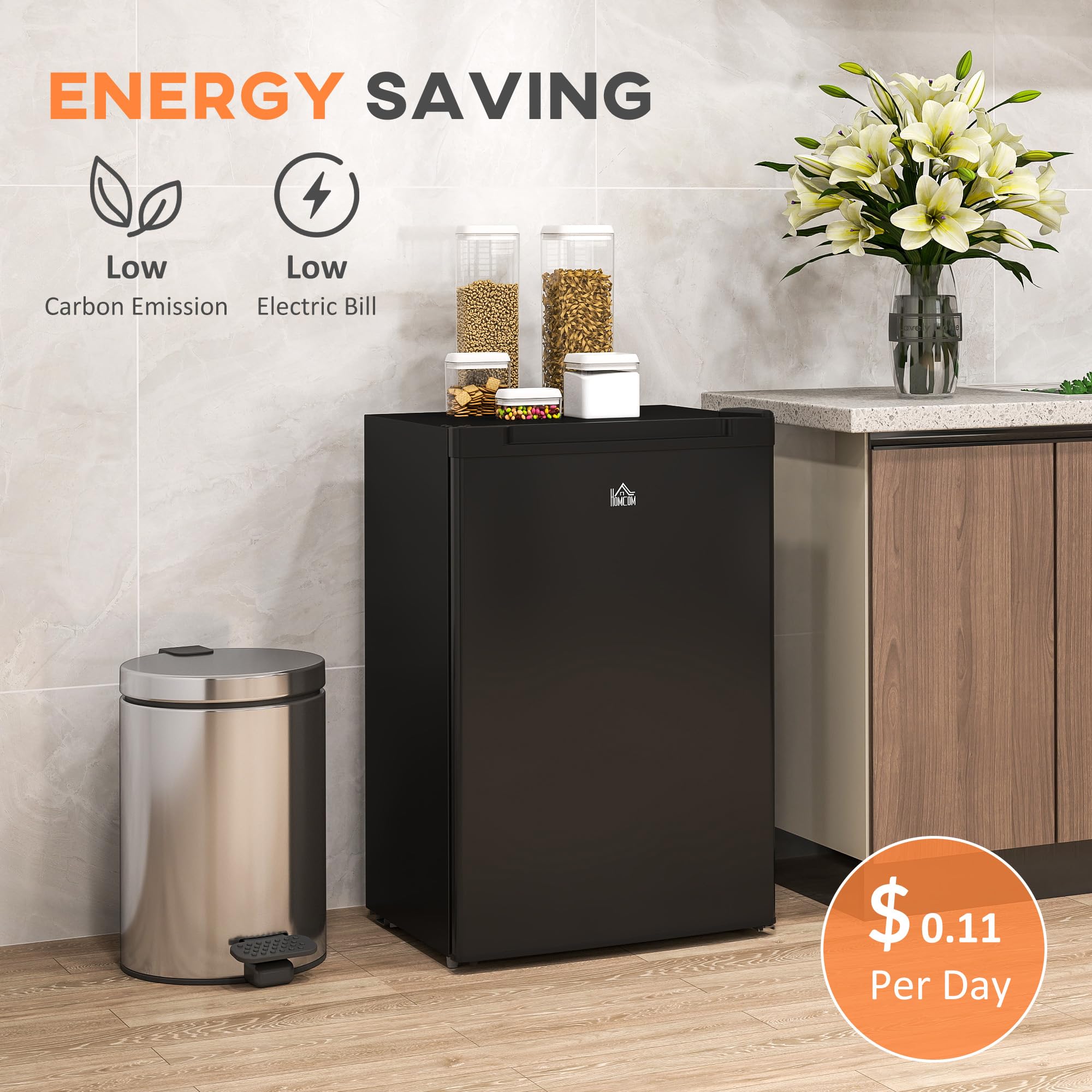 Energy Efficient: With a low-energy consumption compressor, your daily energy costs are estimated to be lower. This compact freezer cools quickly and quietly, saving energy. And it will stop and start automatically when it reaches the preset temperature.