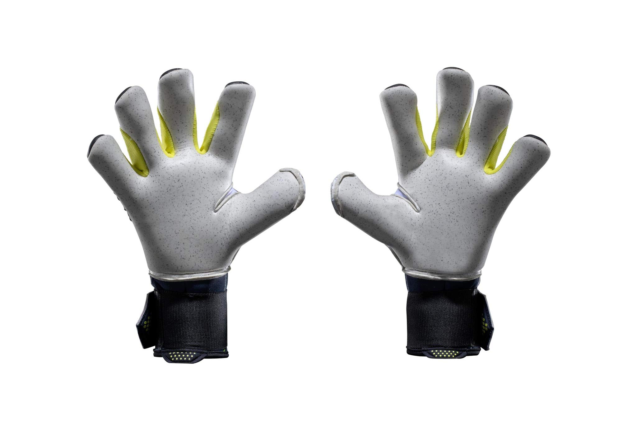 PREMIUM MATERIALS: The Silencer Threat Goalkeeper Gloves are made with Latex, Polyester, Neoprene, and Nylon materials; Punch zones are Polybutadiene rubber; Finger spines are plastic; Set of 2 gloves (Pair); Available in sizes 6-11; Ambidextrous; Black with neon yellow trim