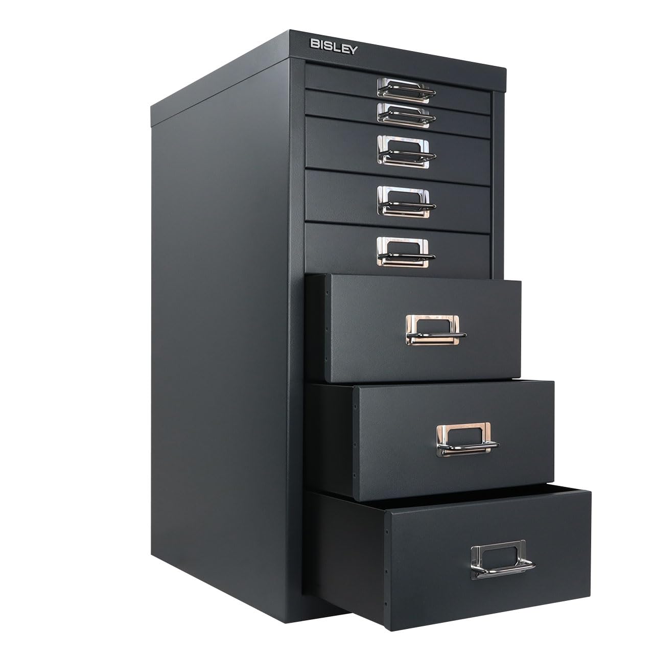 The aptly-named Bisley Multi Drawer Under-Desk Steel Cabinet features eight drawers to organize paper, forms, art supplies, crafts, scrapbooking tools and other items. The drawers pull out fully, offering easy access to drawer contents. The durable steel cabinet is sized to fit under a desk or counter. Accented with attractive chrome pull handles and built-in label holders, this compact storage cabinet looks great at the office, workshop, garage or home. Enhance with Bisley Multi Drawer Inserts to neatly store pens, paper clips, thumb tacks and other small items. This under-desk cabinet is finished in long lasting powder coated paint that won’t chip or rust.