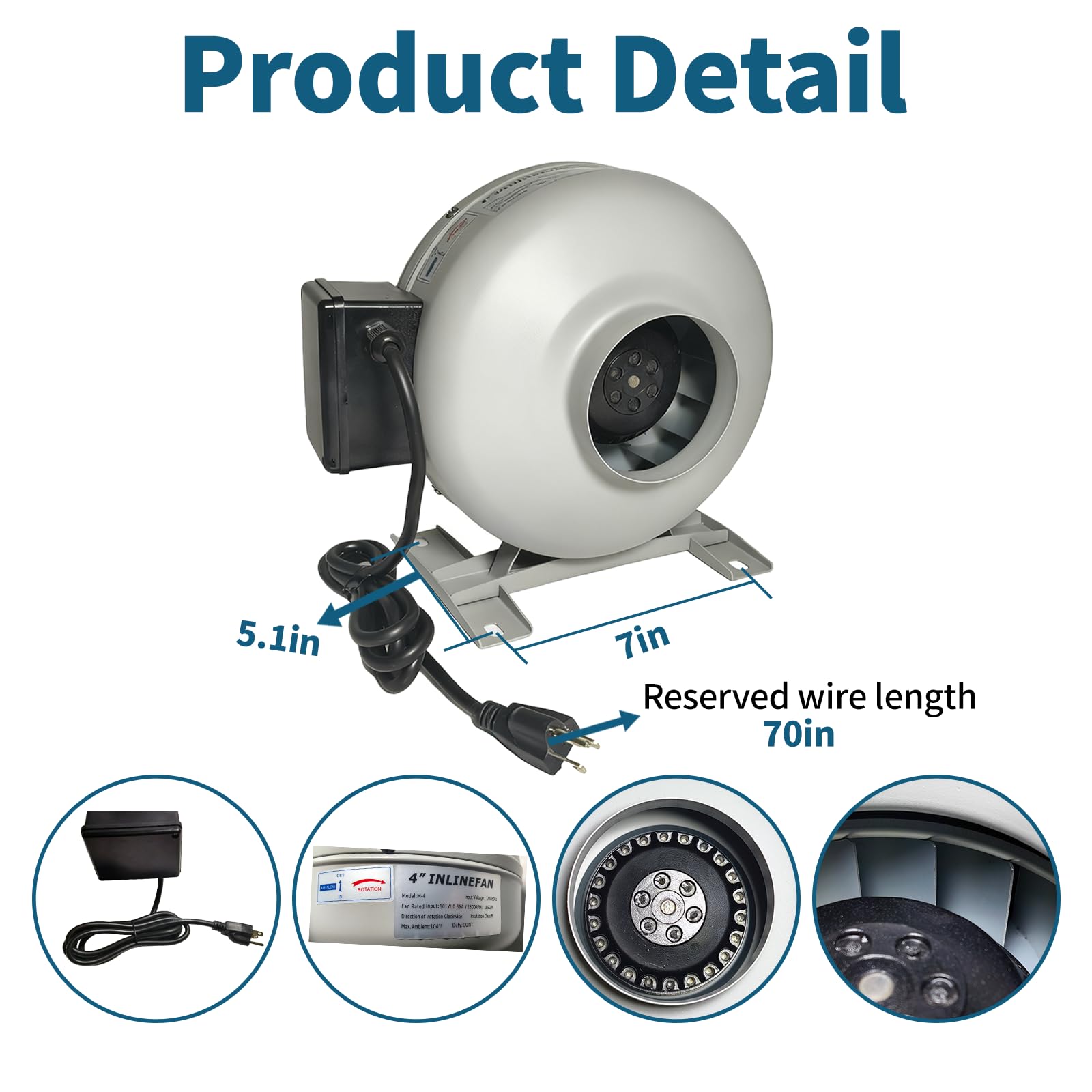 QUIET AND STABLE PERFORMANCE: Built with high-quality bearings, balanced fan blades, and a vibration-free motor, this inline duct fan with pressure switch runs smoothly and quietly. The stable switch, strong suction, and durable design make it one of the most reliable dryer vent blower booster fans for everyday laundry exhaust machine setups.