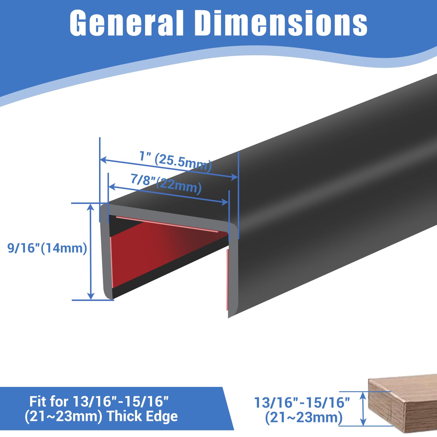 Application: The edge trims can used to cover the edges of all the sheet parts to prevent people been hurt by the shape edges, it can fit edge from 11/16" to 13/16".