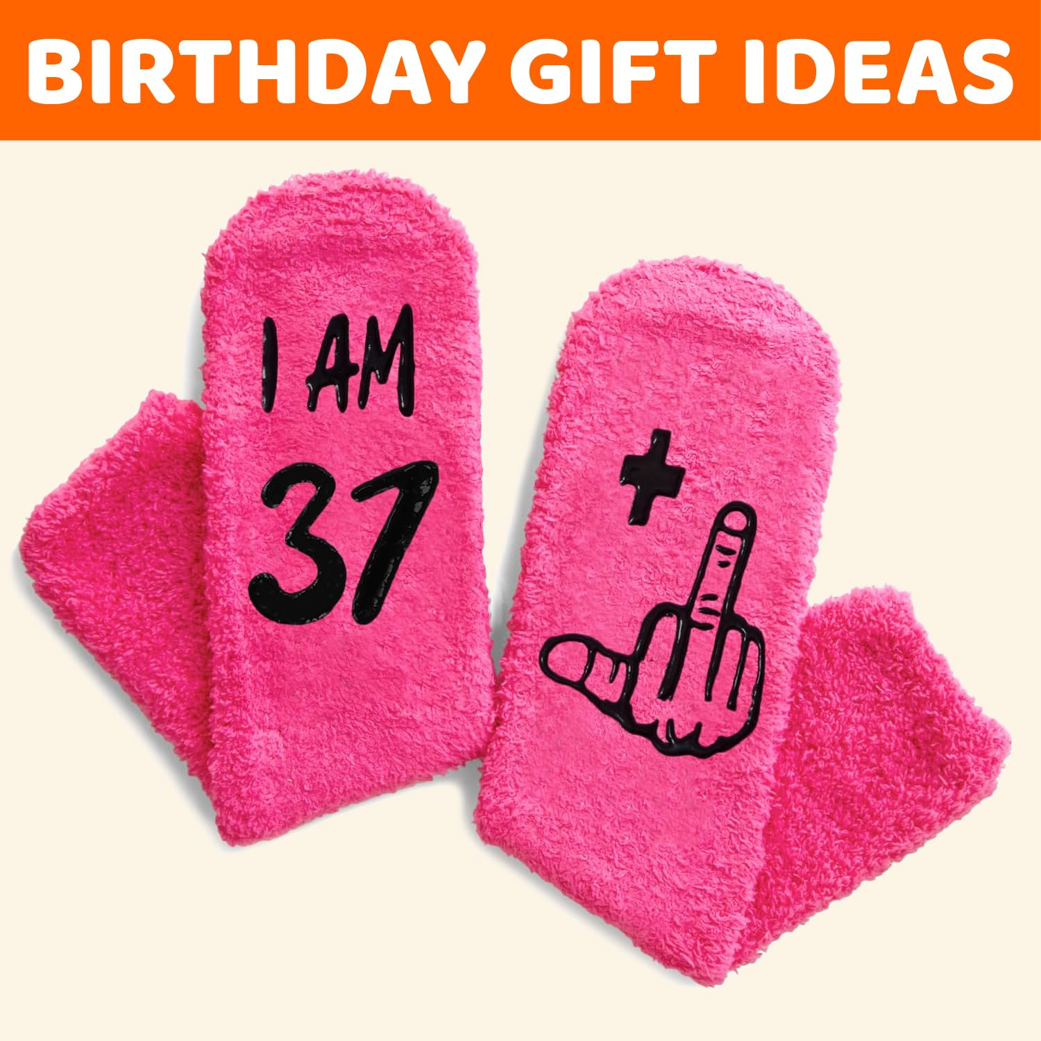 38TH BIRTHDAY GIFT IDEAS: Say it with socks - "I AM 37+1." These are suitable for any holiday gifts, such as Birthday gifts, Christmas gifts, or White Elephant gifts.