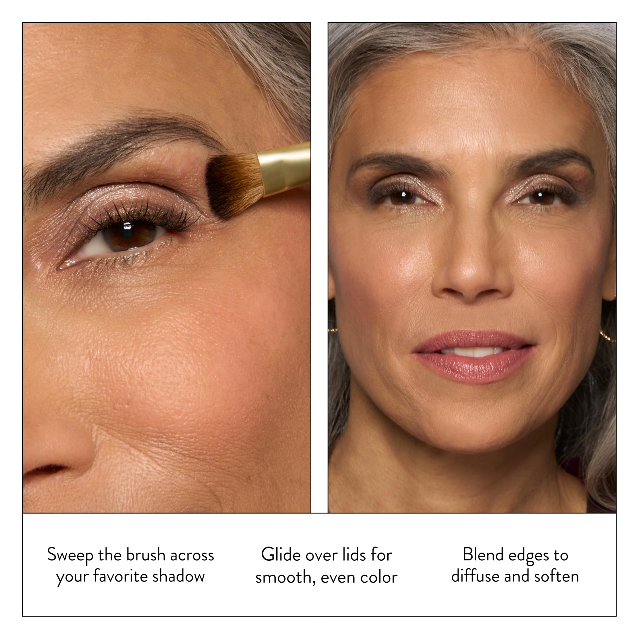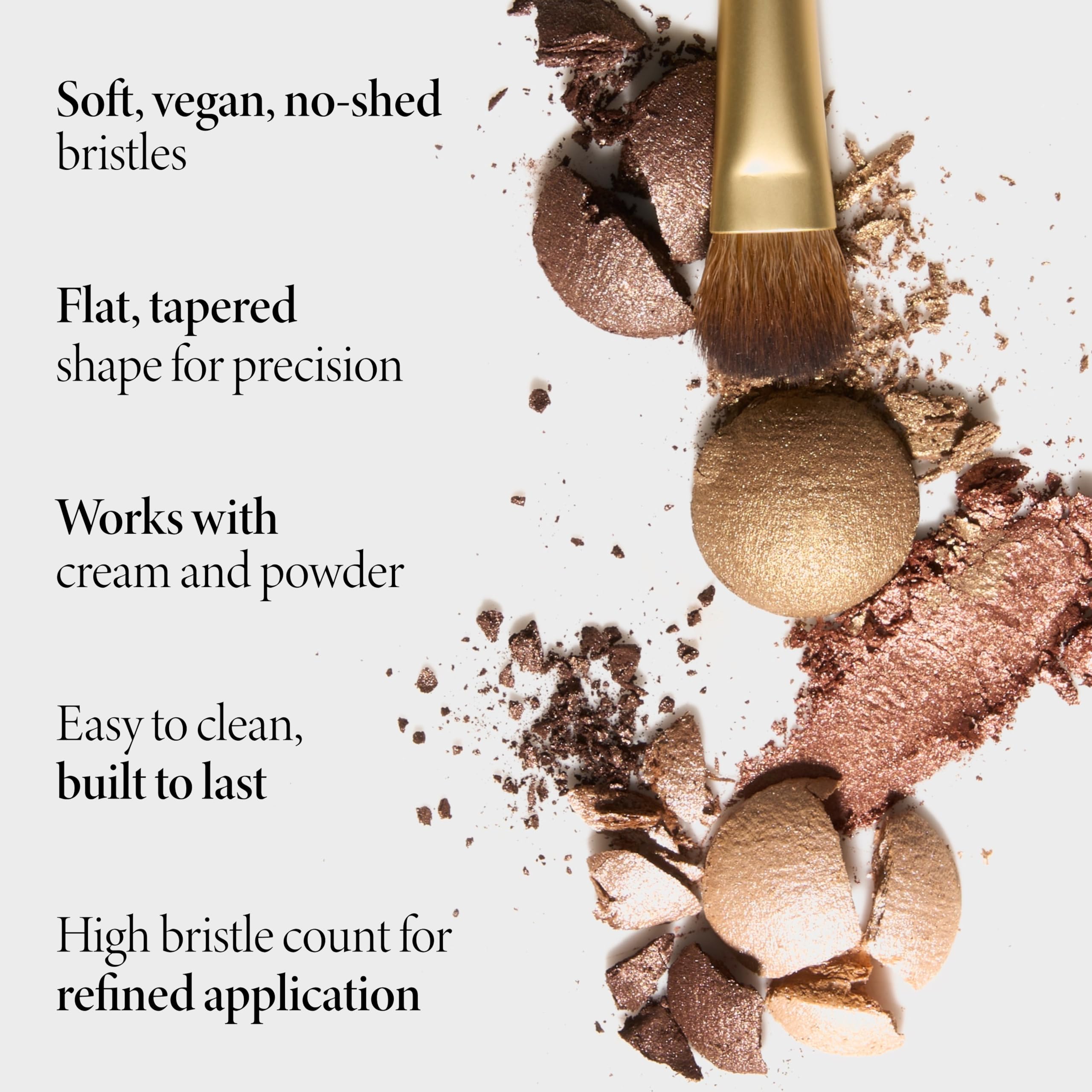 ALL-OVER EYESHADOW BRUSH: Our All-Over Eye Shadow Brush is the perfect brush for an effortless eye look all over the lids. This tapered eye shadow brush allows you to easily apply color all over your lids with precision, from corner to corner.