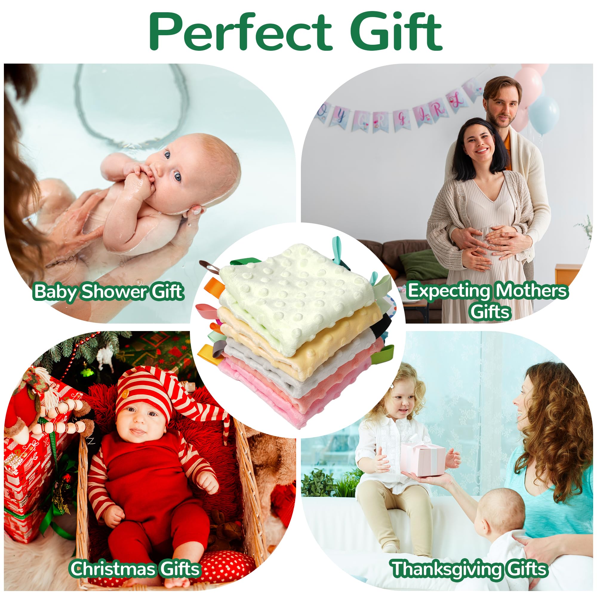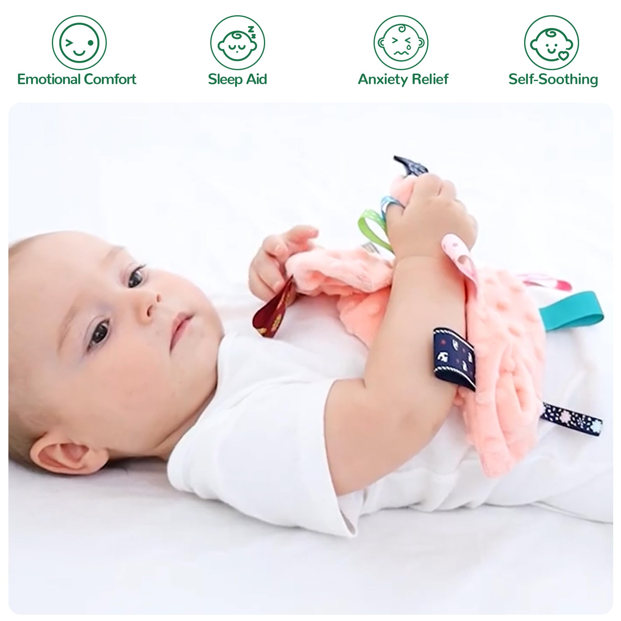 Baby Security Blanket - Sensory stimulate, the tag security blanket features super soft material. The variety of textures will stimulate your curious little one's sensory experience, our tag blanket are super soft and skin friendly for babies.Provide your child with comfort and security.
